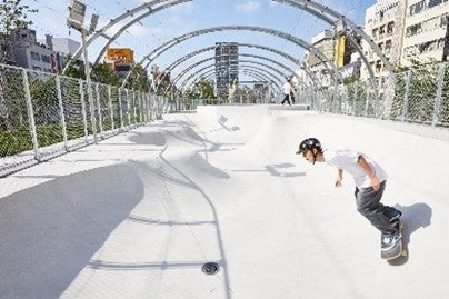 公園の南街区には、従前より区民や来街者に親しまれてきたスケート場やボルダリングウォールに加え、多目的運動施設(サンドコート仕様)を設置し、誰もが気軽にスポーツを楽しみ、交流できる場を提供。北街区には様々なイベントも開催できる約1000㎡の芝生ひろばを整備。