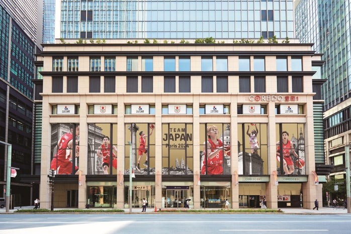 JOCエンブレムやアスリートの肖像を用いた大型グラフィック等を掲出して街全体をドレッシングし、パリ2024大会に挑戦するTEAM JAPANを応援する取り組み。