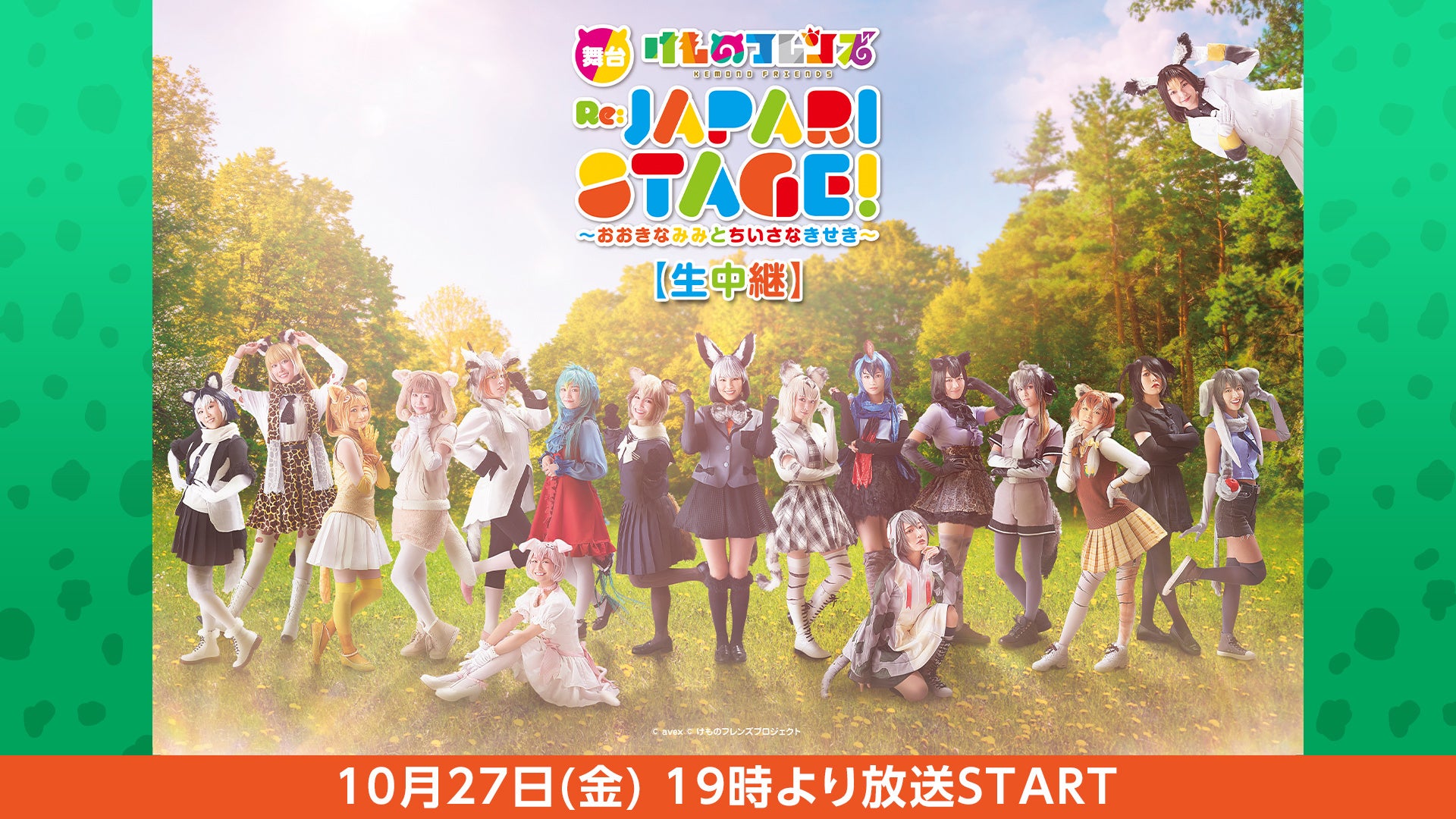 品川プリンスホテル クラブeXにて上演される舞台「けものフレンズ」おおきなみみとちいさなきせき Re:JAPARI STAGE! の10月27日(金)19時公演の生中継が、ニコニコ生放送にて独占生配信が決定いたしました。