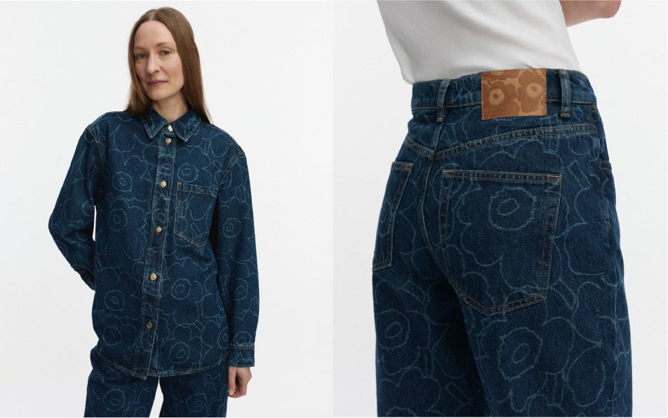全面にPiirto Unikkoをあしらった遊び心あふれるデザインが、デニムスタイルを新鮮にブラッシュアップしてくれます。