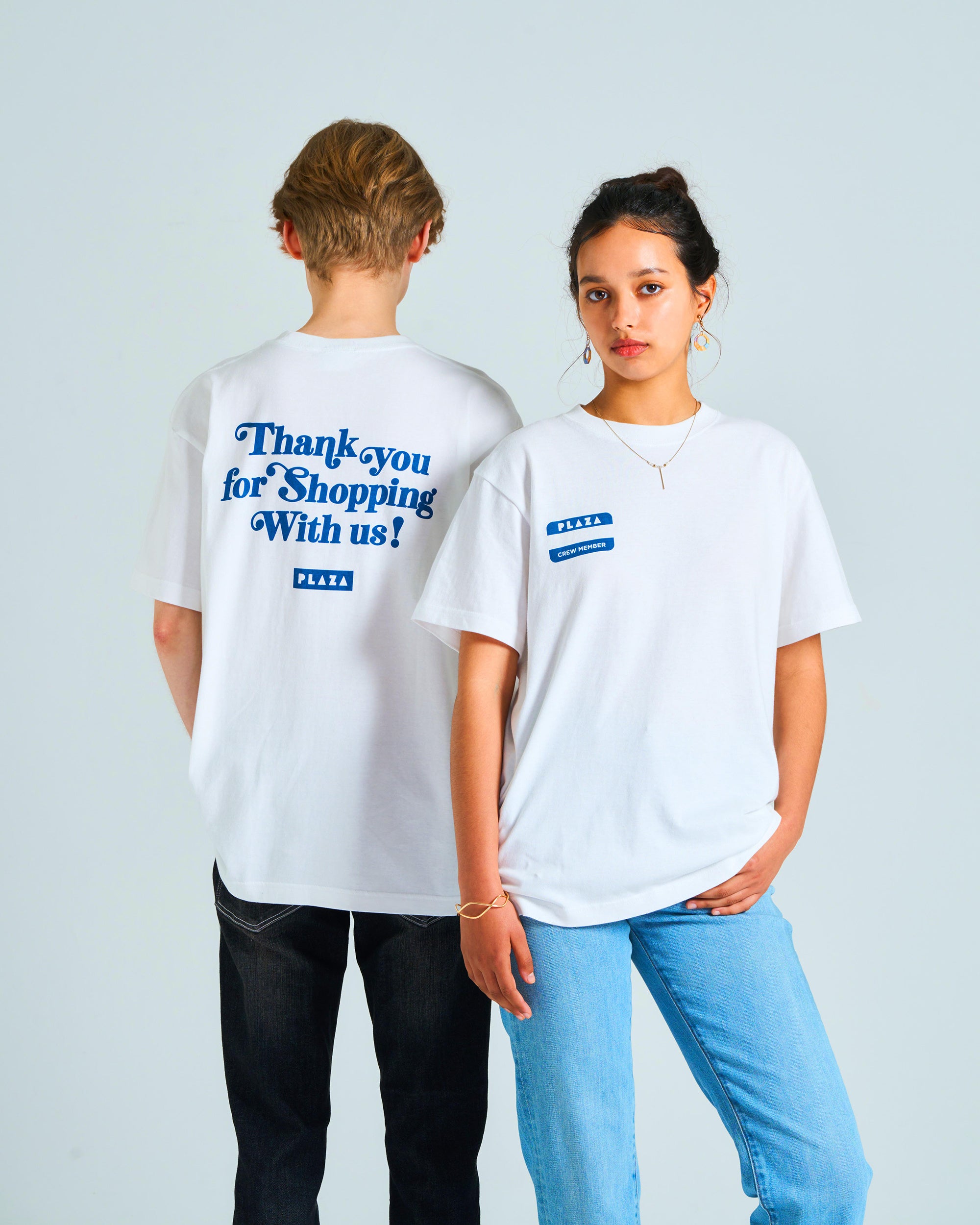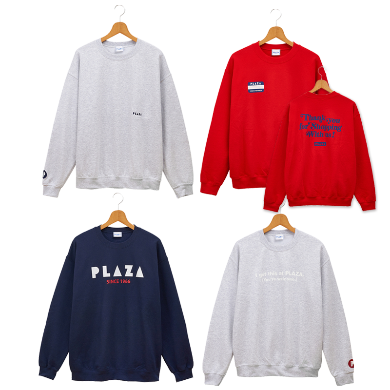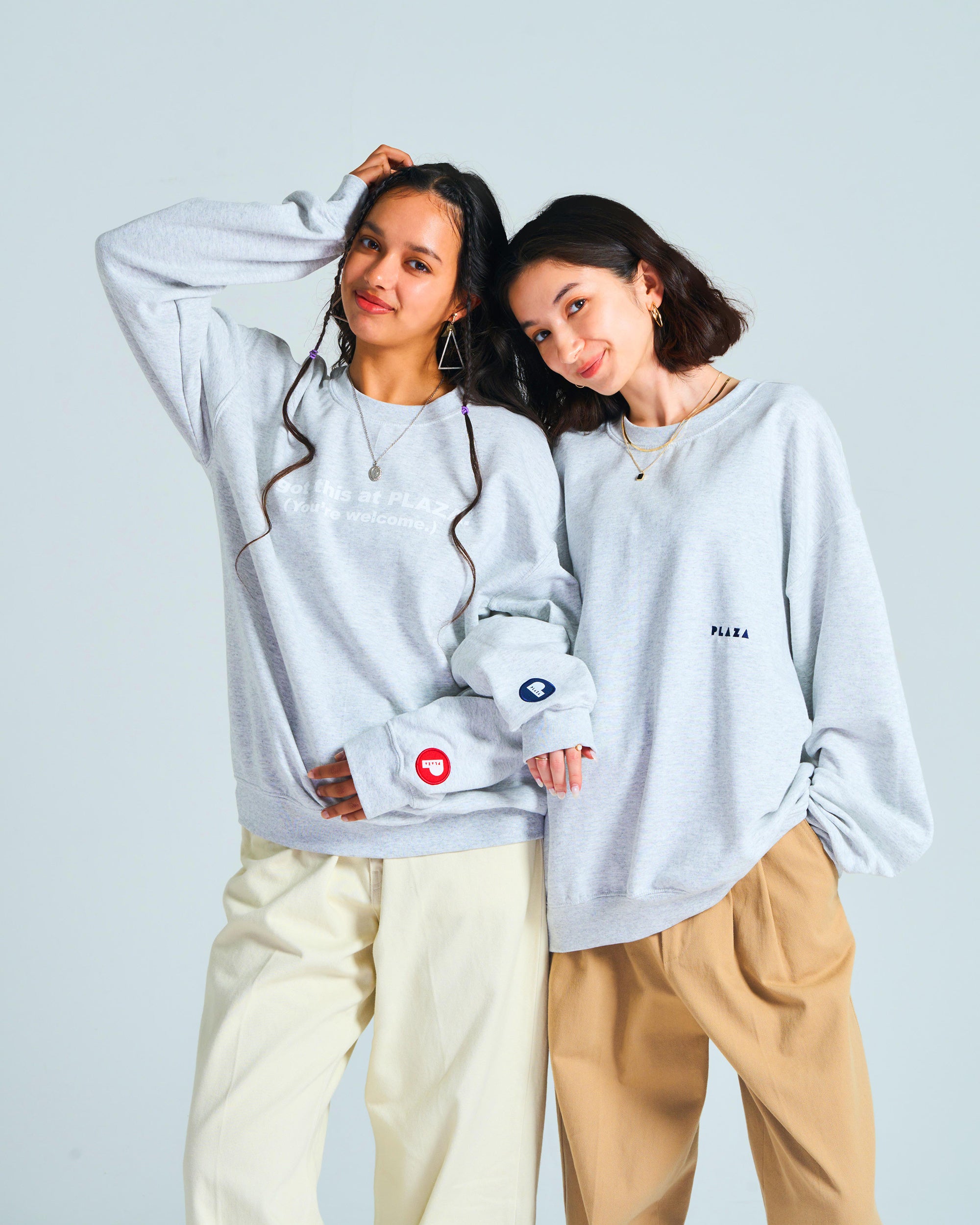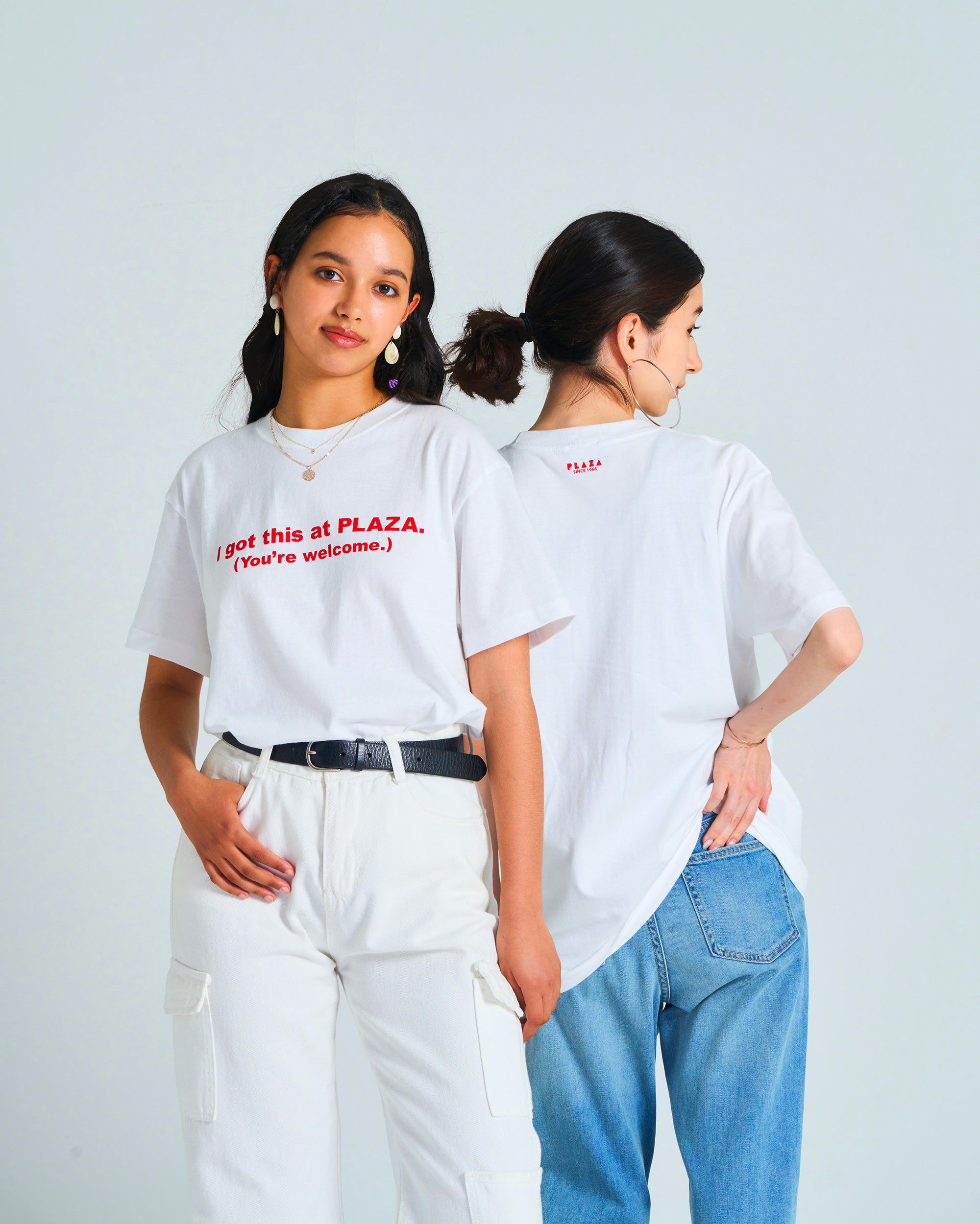 中でも注目は、Tシャツ(全3種)とスウェット(全4種)!ショッピングにまつわる英字のメッセージや、ネームバッジ風の胸元プリント、そしてやっぱりハズせないPLAZAロゴと、どれもユニークなデザインです。Tシャツはベーシックに使えるMサイズ(※オンラインストア限定で、2種のみLサイズも展開)。スウェットは、デザインによってM/Lとサイズが異なり、ユニセックスで着用できるアイテムです。お好みのサイズ感でチョイスするのもおすすめ!