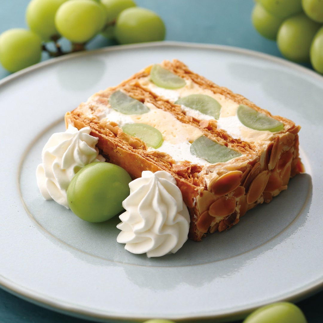ナポレオンパイをアレンジした「KIHACHIのシャインマスカットパイ」がフルサイズでお楽しみいただける