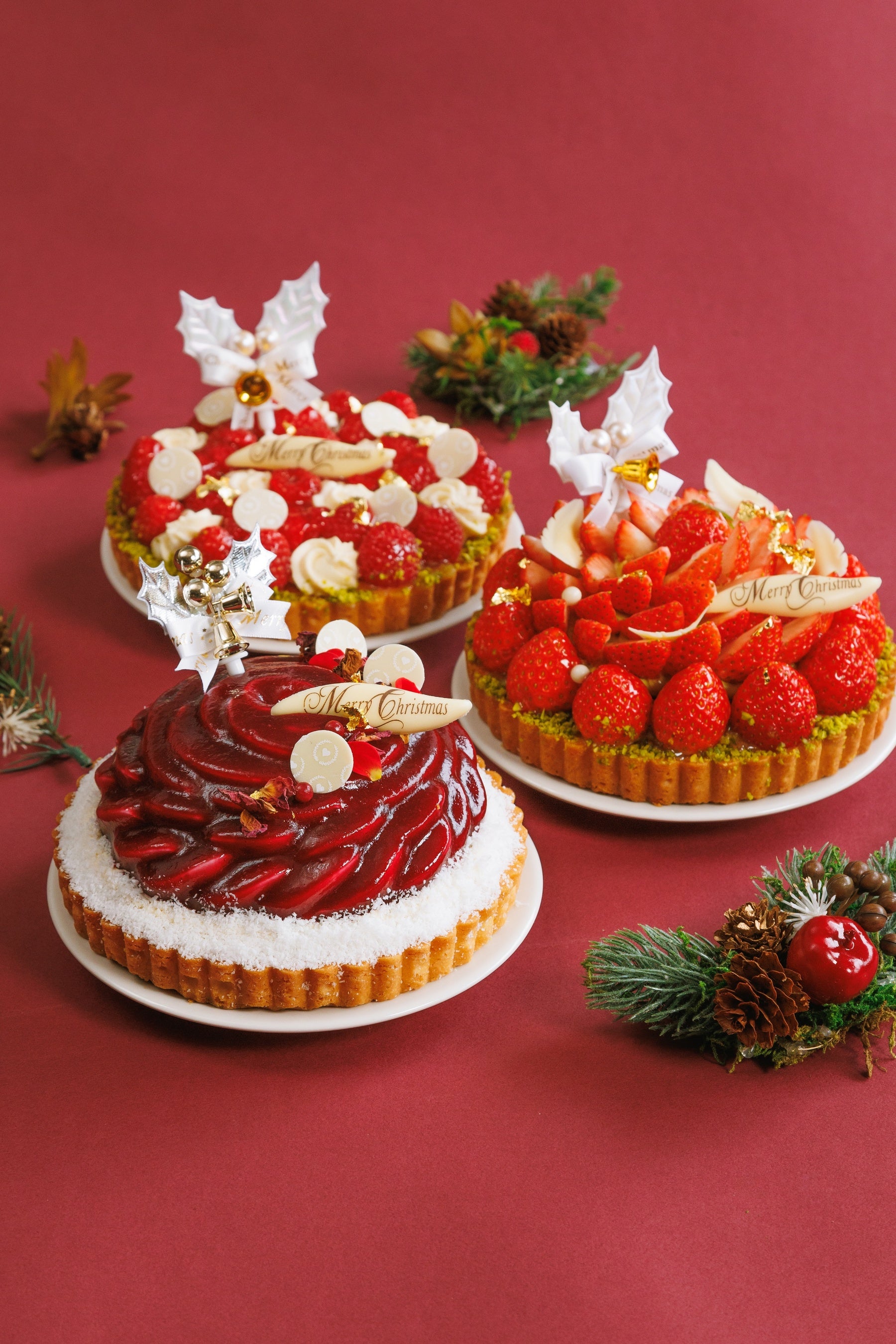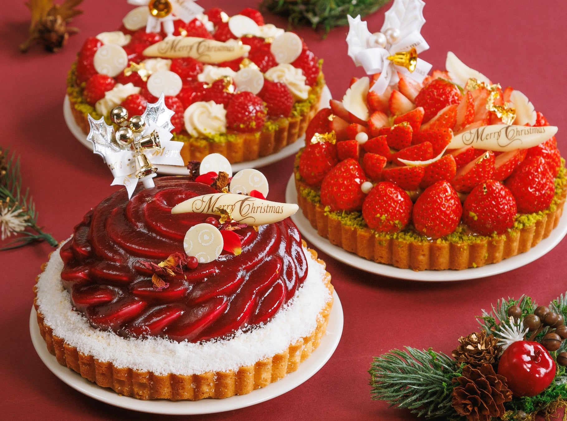 毎年完売御礼をいただく大好評の「SALON BAKE & TEA」のクリスマスケーキ。今年は新作の「マシェリ ド ローズ」をはじめ、贅沢に苺を使用した人気No.1の「タルト オ フレーズ」、艶やかな完熟ラズベリーを宝石のように華やかに仕上げた「タルト フランボワーズ」の3種類のケーキを販売いたします。サイズは2人で食べ切れる人気の4号サイズ、ホームパーティなど大人数で召し上がっていただける5号サイズをご用意。お好みやシチュエーションに合わせてお選びいただけます。(※ 「マシェリ ド ローズ」は5号サイズのみ)