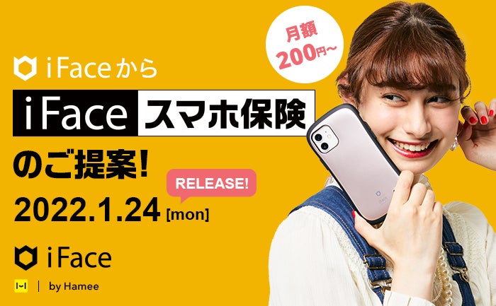 スマートフォングッズの商品開発、及び通販サイトを運営する Hamee(ハミィ)株式会社(所在地:神奈川県小田原市、代表取締役社長:水島 育大、証券コード:東証一部 3134、以下Hamee)は、世界累計販売数 2,000 万個 ( 2020 年 12 月末時点 ) のモバイルアクセサリーブランド「 iFace ( アイフェイス )」より、スマホ本体が破損・故障したときの修理代を補償する「iFaceスマホ保険※」を2022年1月24日(月)より販売開始いたします。