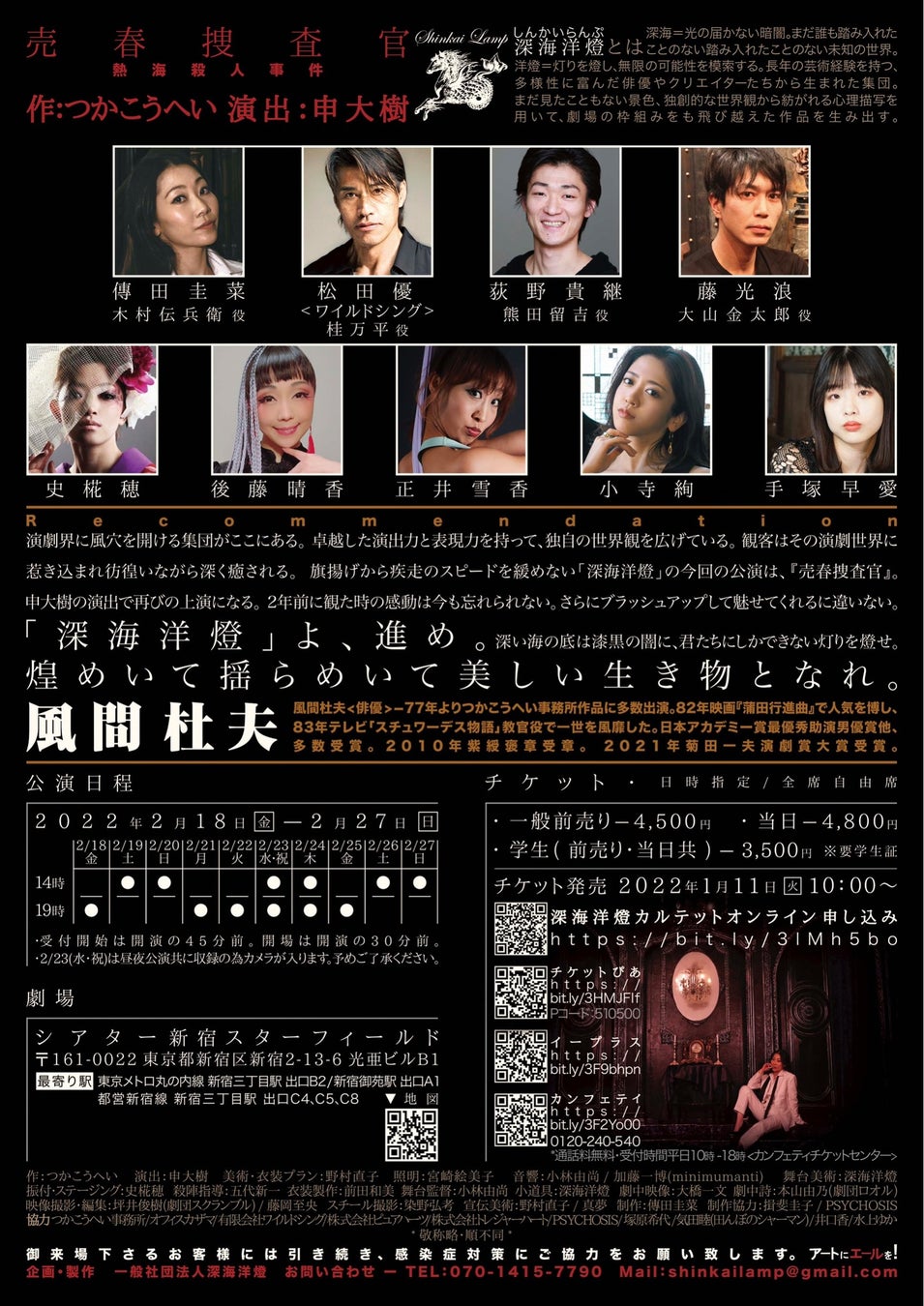 独特の世界観で人々を魅了するクリエイター集団 深海洋燈(しんかいらんぷ) 熱海殺人事件『売春捜査官』上演決定 カンフェティでチケット発売