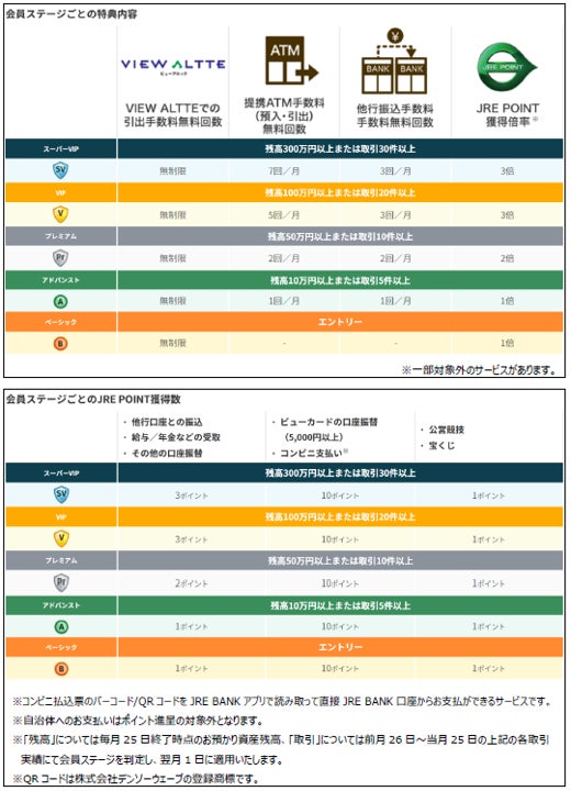 JRE BANK口座のご利用状況に応じて会員ステージが決定します。