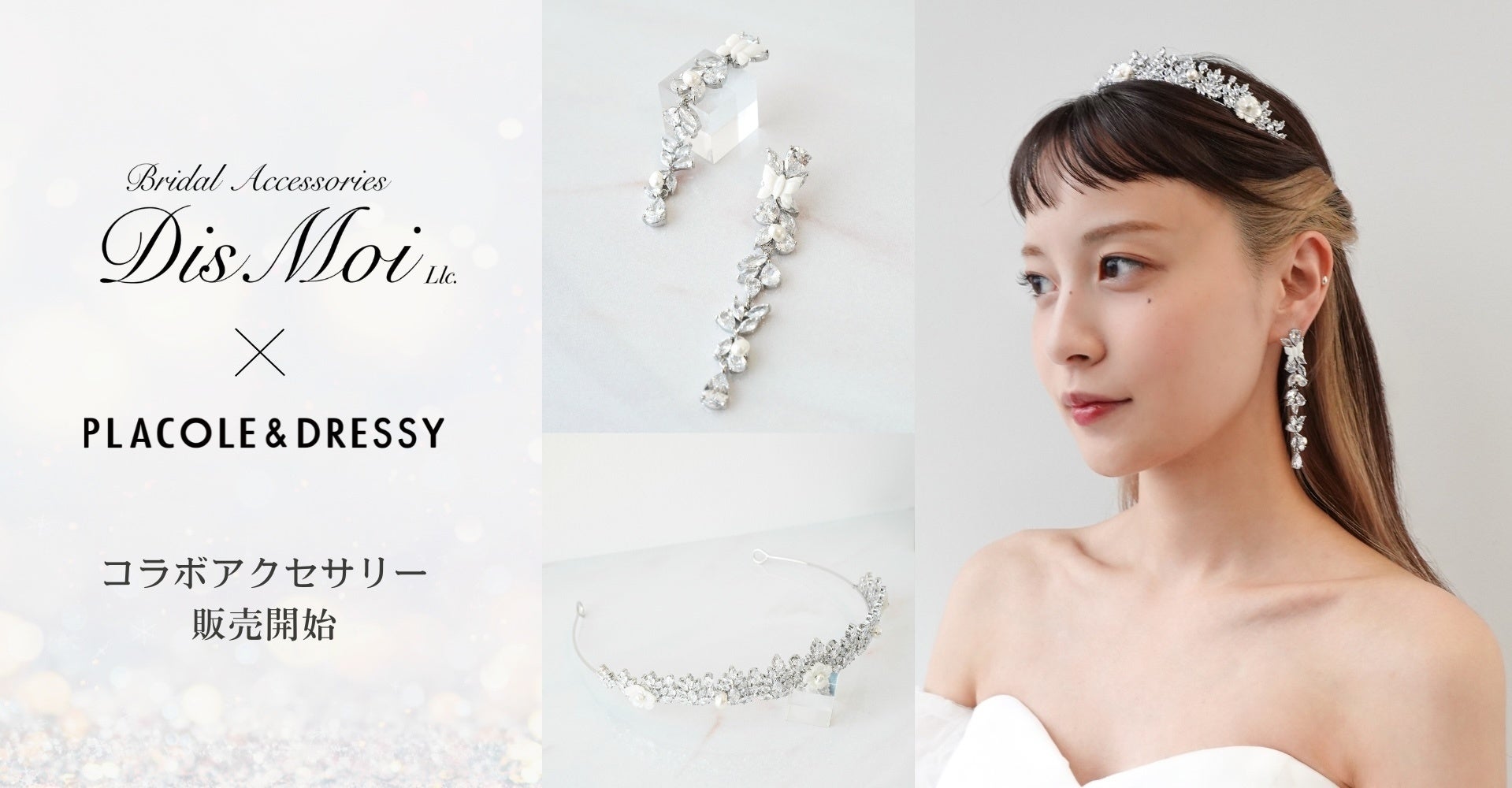 アクセサリーブランド『DisMoi』と『PLACOLE & DRESSY』とコラボを実施、DRESSYONLINEにて販売開始。ジルコニアにパール・シェルパーツを組み合わせた、華やかさと柔らかさを兼ね備えたシリーズとなっています。