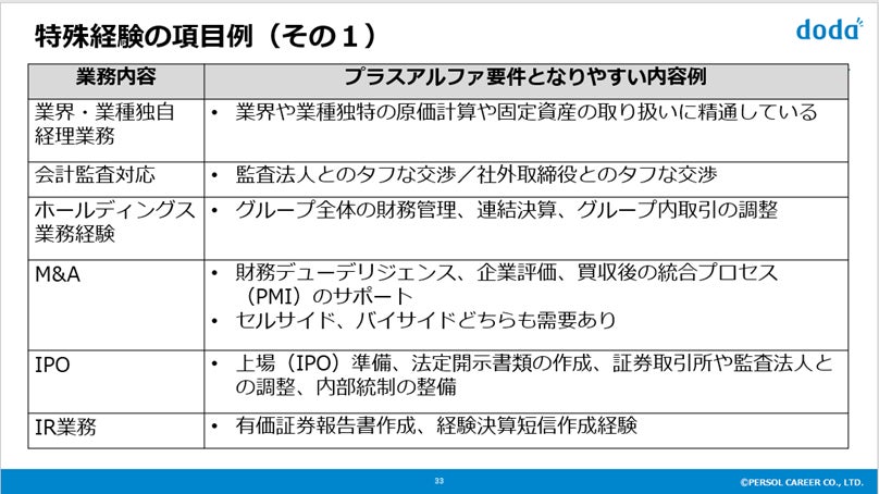 プラスアルファポイント:「会計監査対応」「IPO」「経理業務の改善」などの特殊経験は評価につながる