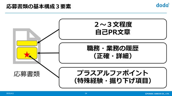 応募書類の基本構成:まずは自己PRで差別化を。職務履歴、業務内容には特殊経験も盛り込む