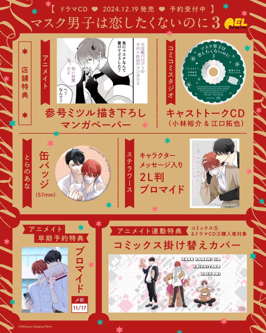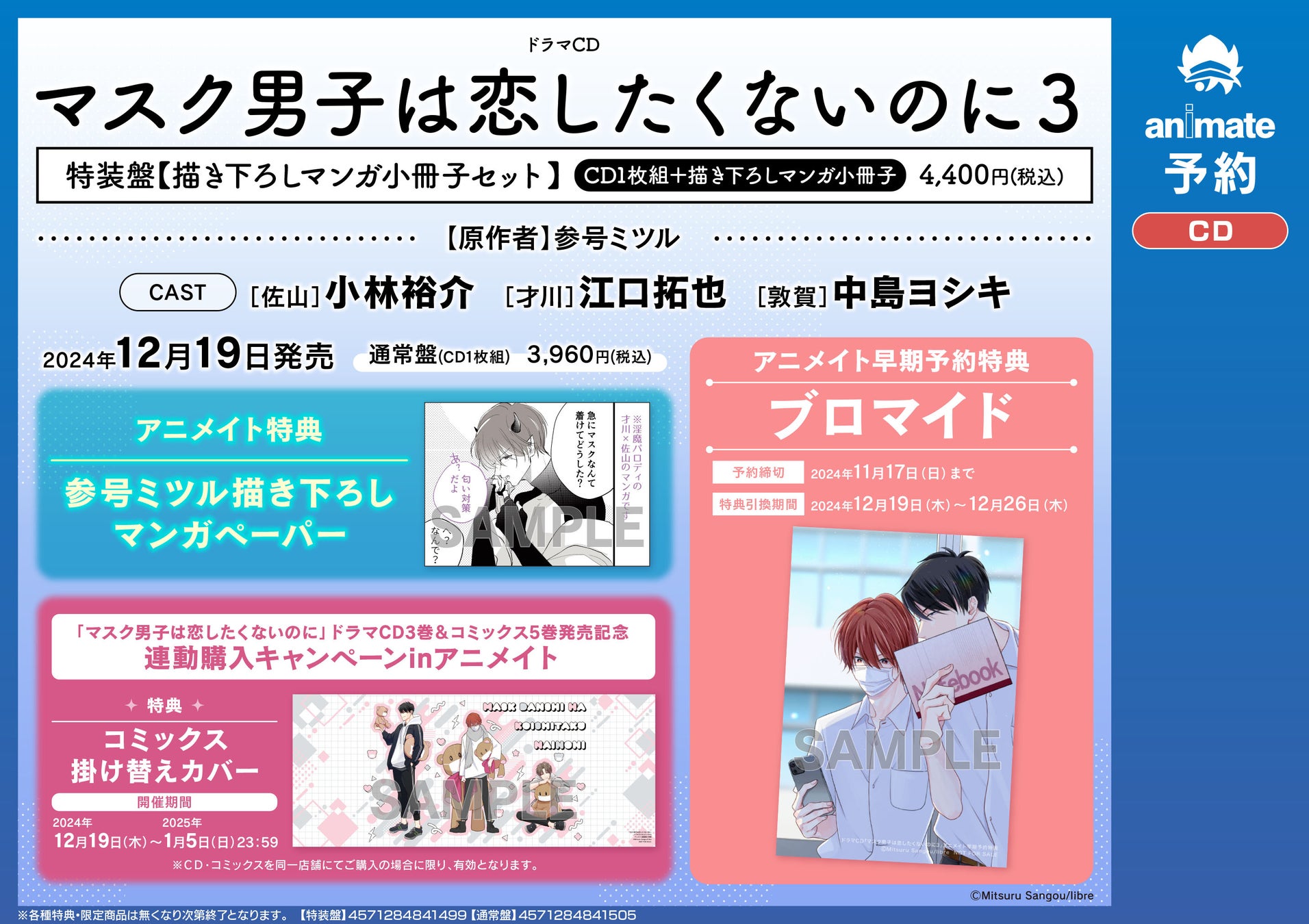 BLドラマCD「マスク男子は恋したくないのに3」の試聴・キャストインタビュー・ジャケット・小冊子チラ見せ・特典画像を公開♪