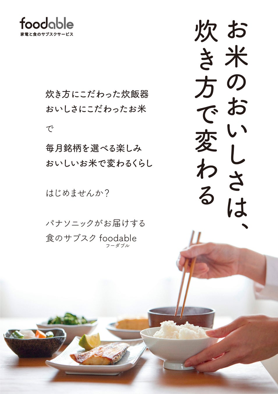 パナソニック株式会社は、家電と食のサブスクリプションサービス「foodable(フーダブル)」を、10月17日(火)オープンの京都髙島屋S.C.[T8]2階 Meetz STOREにて「おうちで全国ご当地米食べくらべ体験」コースの展示を開始いたします。