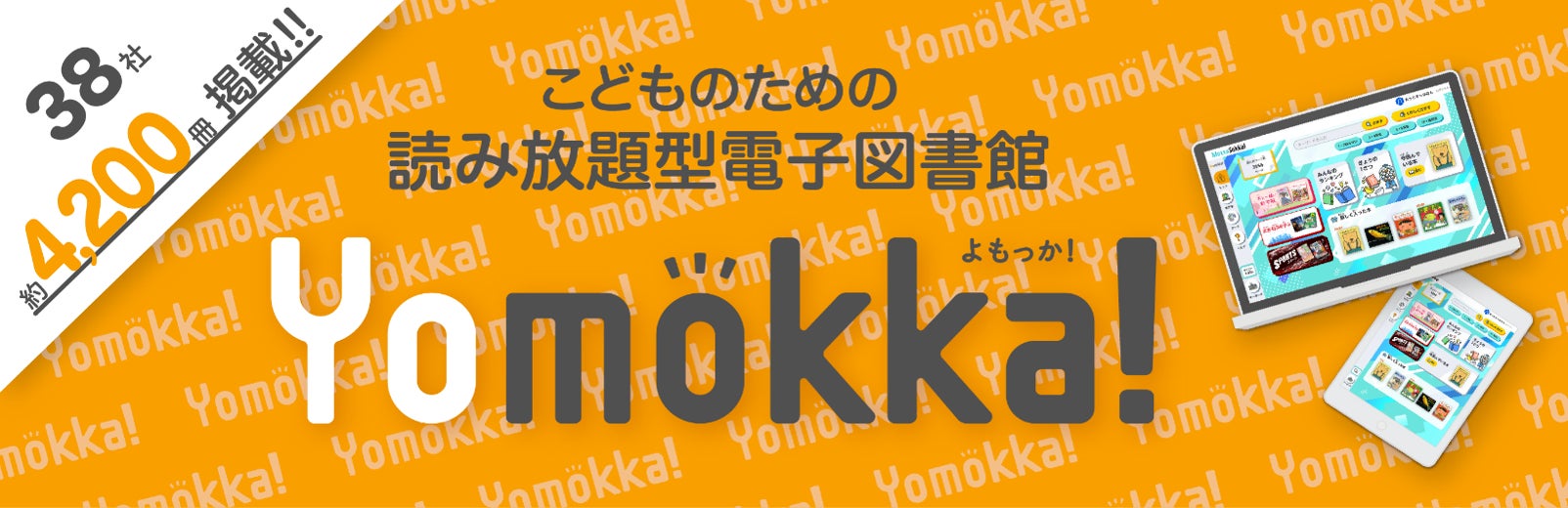 『Yomokka!』は“いつでも、どこでも、好きなだけ!”をコンセプトに、こどもたちの読書環境を支え、新たな読書体験を提供することを目指した、読み放題型電子図書館です。2024年4月現在で38社の出版社の約4,200冊の本を掲載し、こどもたちの多様な興味にこたえることを目指しています(出版社、掲載作品は順次増えていきます)。