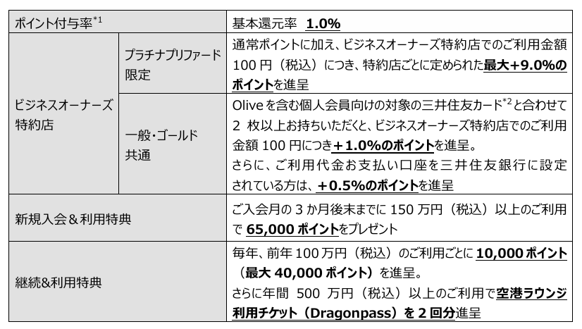 ■三井住友カード ビジネスオーナーズ プラチナプリファードの特徴