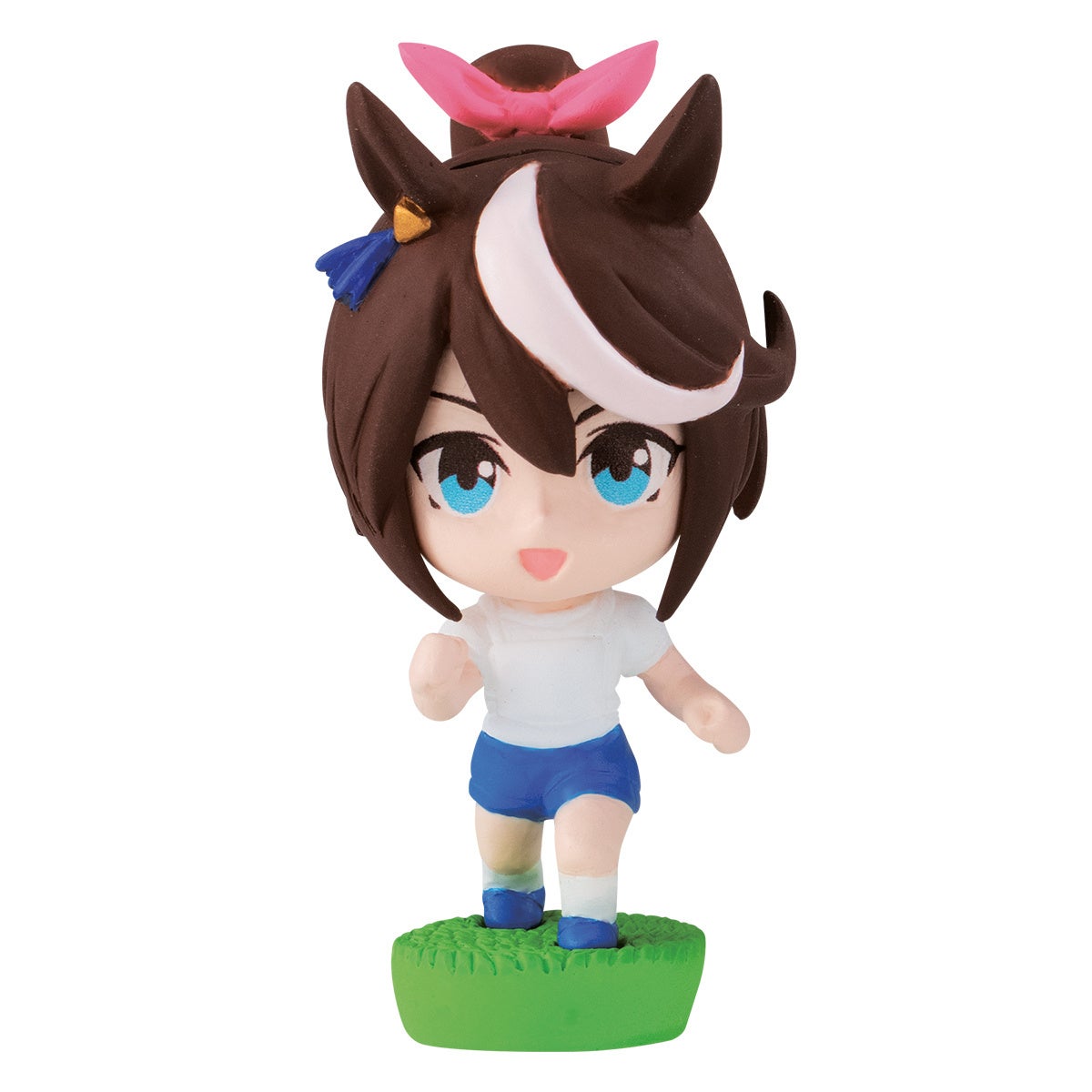レース直前のゲート内での姿をイメージしたポージングで立体化。台座のスリットにコードを挟み込み横一列に並べることで出走直前のシーンを再現できます。
