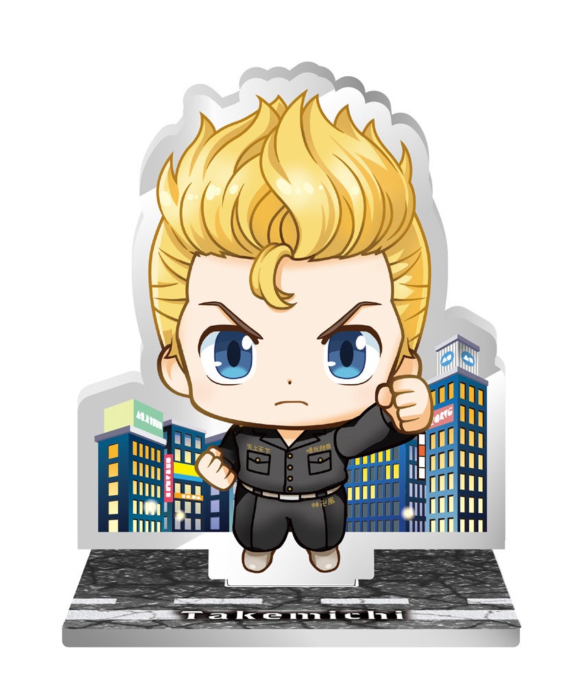 夜の街をバックに佇むキャラクター達がカッコいいアクスタ!つなげて並べると圧巻です。
