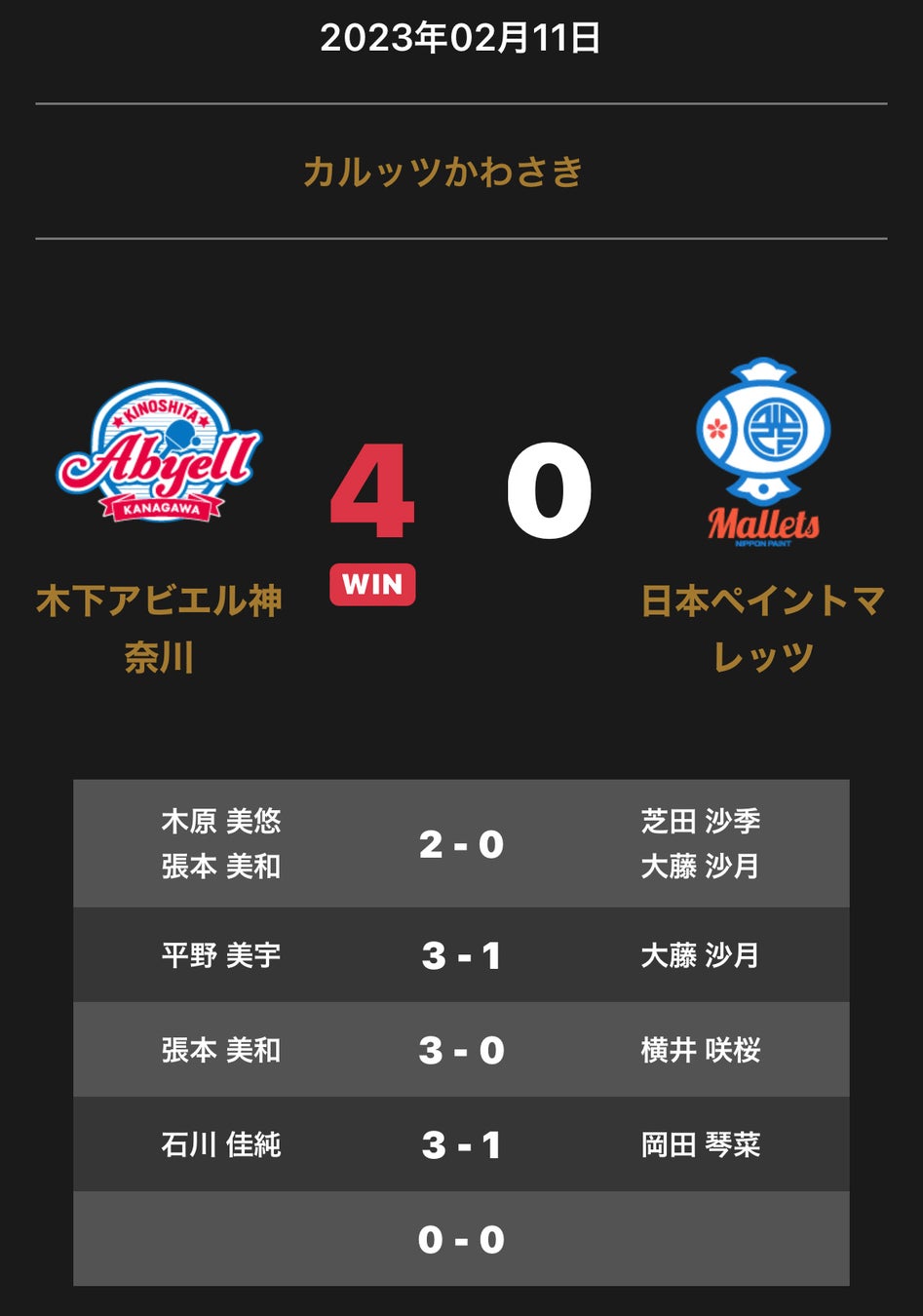 ノジマTリーグ 2022-2023シーズン 公式戦 2月11日開催 木下アビエル神奈川 vs 日本ペイントマレッツ 試合結果