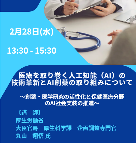【JPIセミナー】厚生労働省「医療を取り巻く人工知能(AI)の技術革新とAI創薬の取り組みについて」2月28日(水)開催