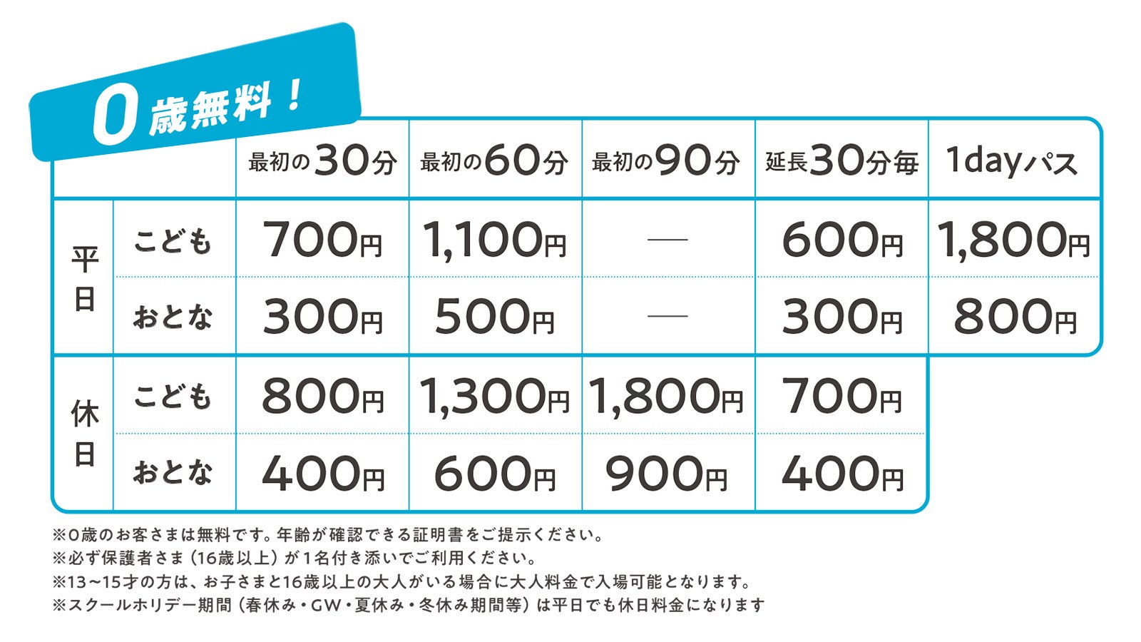 料金(税込):0歳のお子さまは無料です。年齢が確認できる証明書をお持ちください