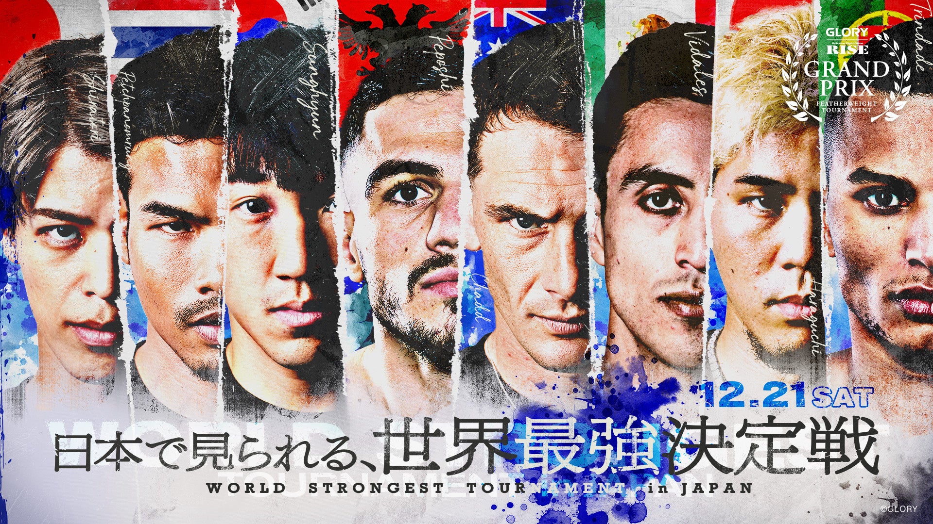 12月21日(土)12時30分より全試合無料生中継する、立ち技打撃格闘技団体RISEの『RISE WORLD SERIES 2024 FINAL』は1年を締めくくる大型イベントで、今大会はイギリスに拠点を置くキックボクシング団体・GLORYとのフェザー級ワンデートーナメント「GLORY RISE FEATHER WEIGHT GRAND PRIX」が注目を集めています。「GLORY RISE FEATHER WEIGHT GRAND PRIX」では、RISE、GLORY推薦の各4選手がトーナメントで最大3試合を実施し、チャンピオンを決定します。RISEからは、フェザー級トップ戦線を走る原口健飛(日本)、白鳥大珠(日本)、チャド・コリンズ(オーストラリア)、イ・ソンヒョン(韓国)の4選手が、GLORYからはGLORY世界フェザー級王者のペットパノムルン・キャットムーカオ(タイ)をはじめ、ミゲール・トリンダーデ(ポルトガル)、エイブラハム・ヴィダレス(メキシコ)、ベルジャン・ペポシ(アルバニア)といったGLORY世界フェザー級ランキング上位を占める4選手が参戦します。