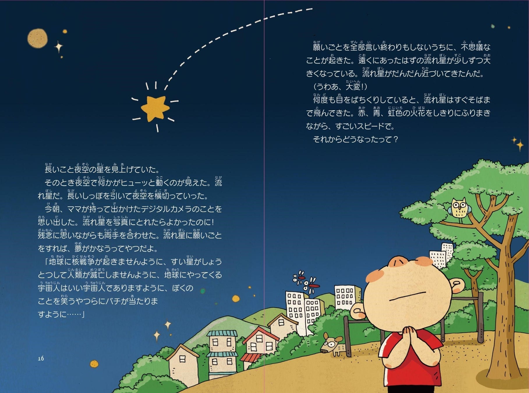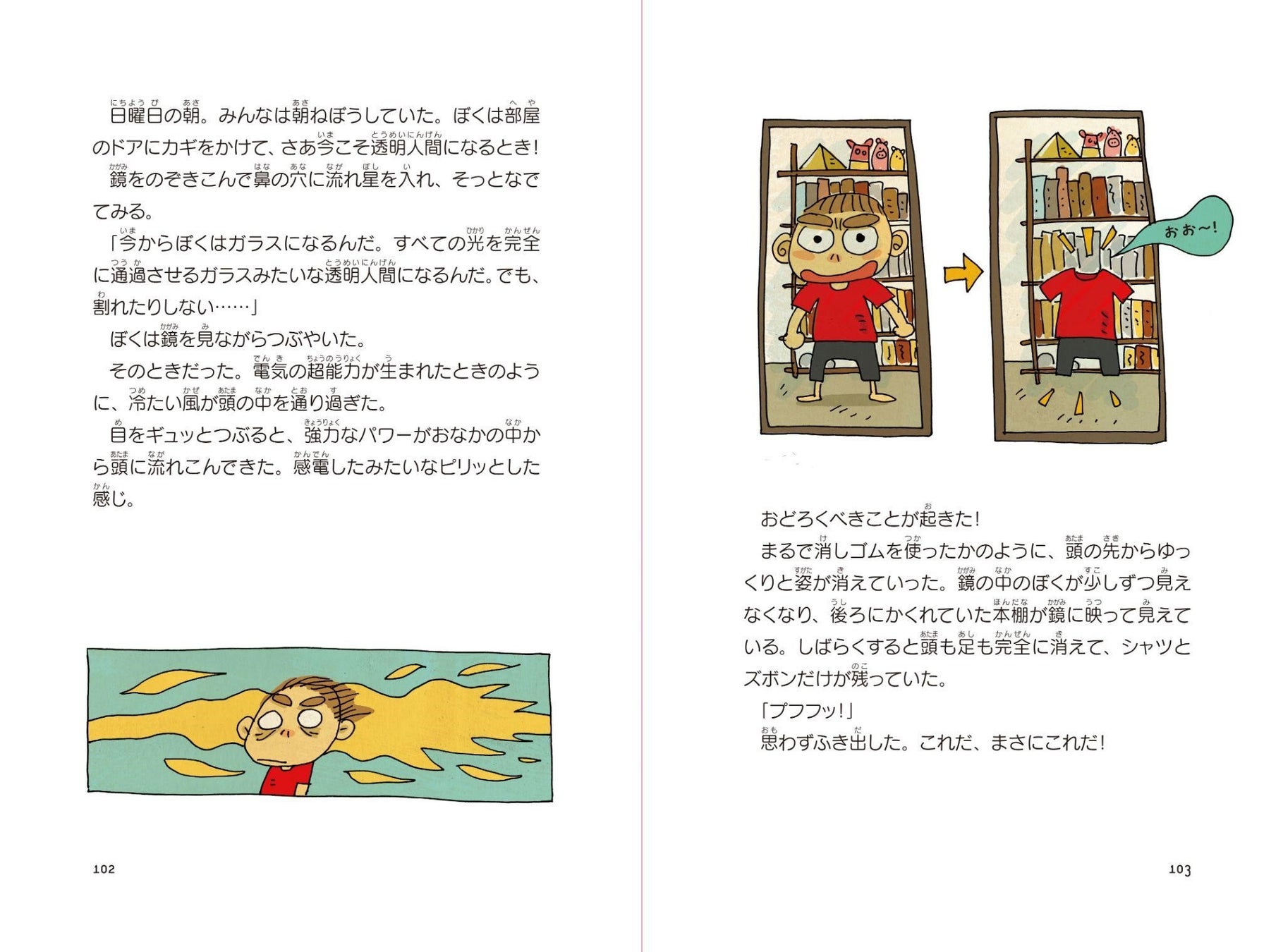 本書の主人公は、小学4年生のガク。学校の成績はイマイチだけれど、好奇心が旺盛で、いつも先生を困らせるクラスの笑われ者です。ある日、落ちてきた流れ星がきっかけで不思議な力に目覚めるのですが、確実に超能力を手に入れるためには、科学の知識を身につけなければなりませんでした。