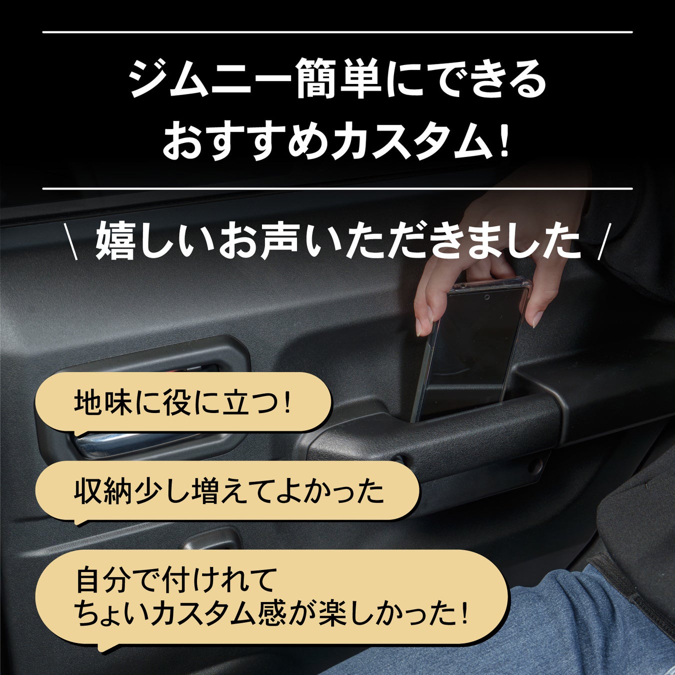 【2025年改良版】ジムニーシエラ/ノマド専用「ドアグリップポケット」販売開始。 ドアグリップはそのまま、便利な収納をプラス。純正ネジでしっかり締まり、簡単に取り付け可能。カスタム初心者にもオススメ!