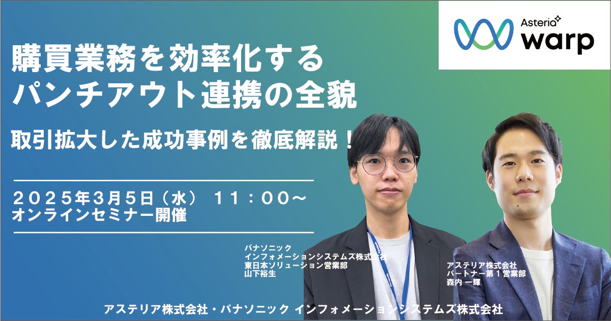パナソニック インフォメーションシステムズ株式会社は、2025年3月5日(水)『 購買業務を効率化するパンチアウト連携の全貌:取引拡大した成功事例を徹底解説!』セミナーを開催します。