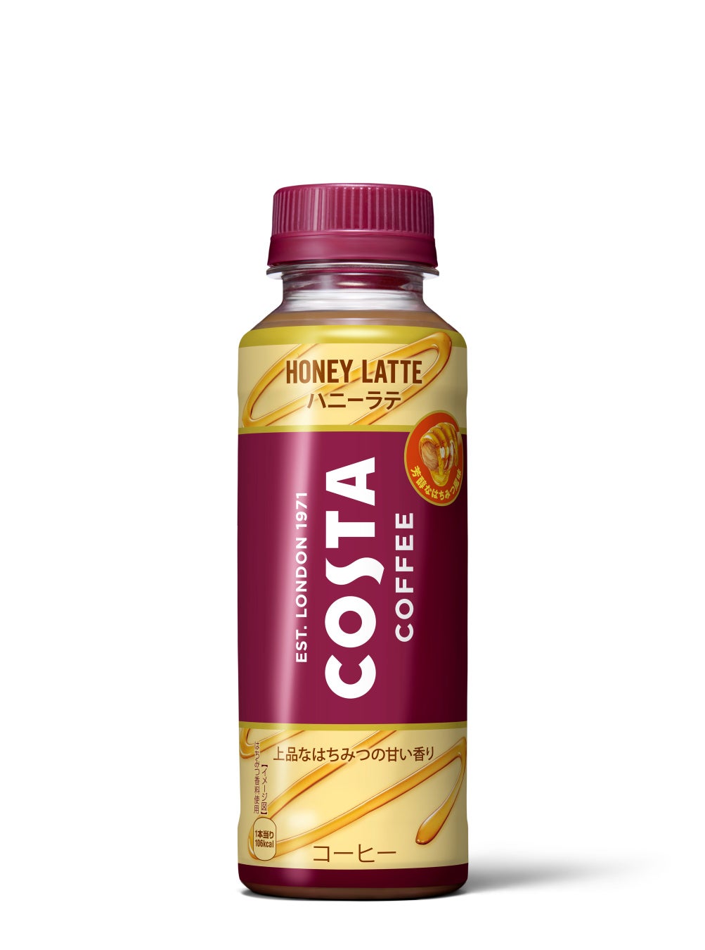 そんな「コスタコーヒー」でもご好評いただいた「コスタコーヒー アーモンドラテ」「コスタコーヒー キャラメルラテ」に続くフレーバーラテとして、今回は人気の高いカフェメニューである「ハニーラテ」をPETボトルで手軽に楽しめる、「コスタコーヒー ハニーラテ」を発売します。国産牛乳とこだわりのエスプレッソ、そこに芳醇なはちみつの風味※2が溶け合った、コク深く上品な甘い香りを感じられる大人なカフェラテに仕上がっています。