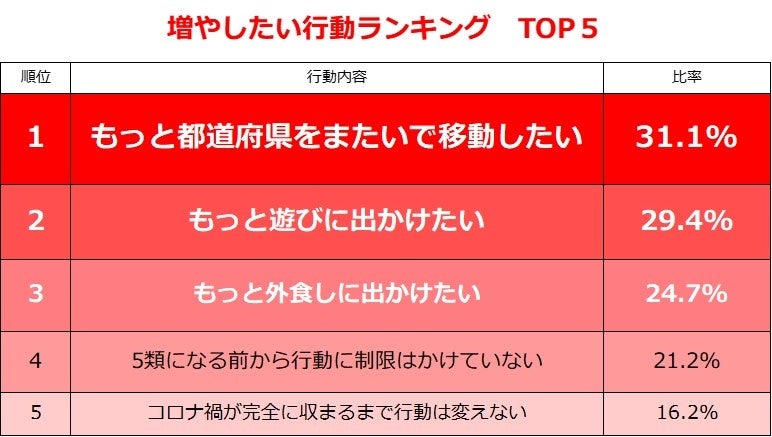 2.5類に変更されて行動を増やしたいこと/増やしたい行動ランキング TOP5