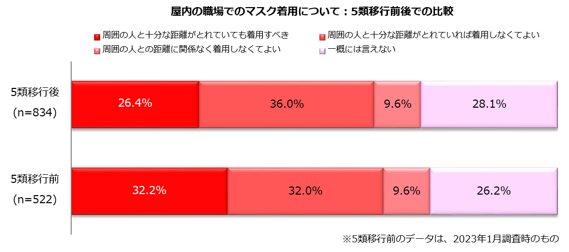 <5類移行後の屋内の職場でのマスク着用について「周囲の人との距離に関係なく着用しなくてよい」と答えた人の理由>
