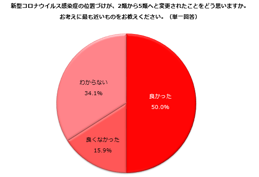 1.新型コロナウイルス感染症が2類から5類へ変更されて「良かった」50.0%