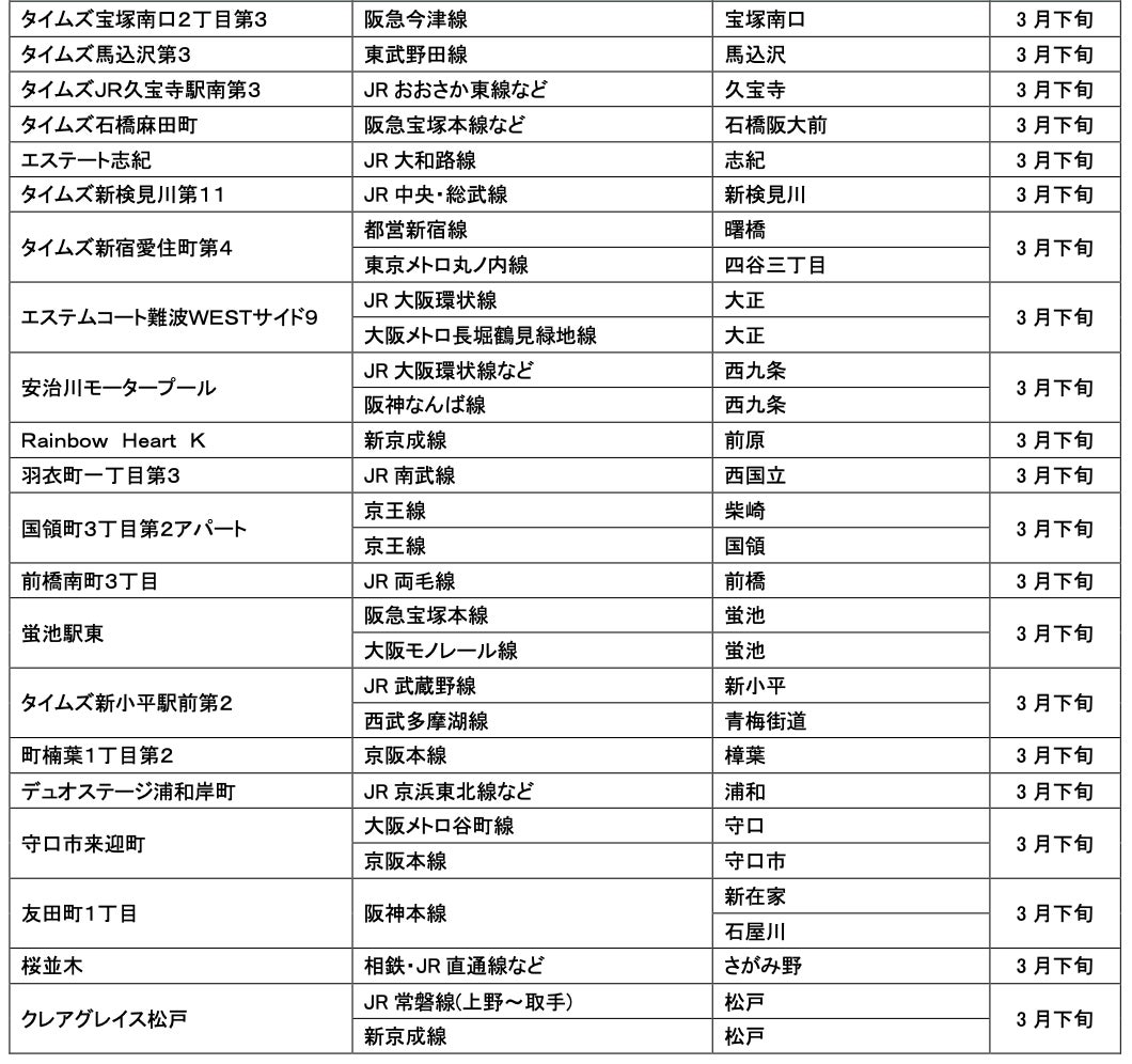 駐車場およびカーシェアステーションのオープン予定については毎月第5営業日にお知らせいたします。