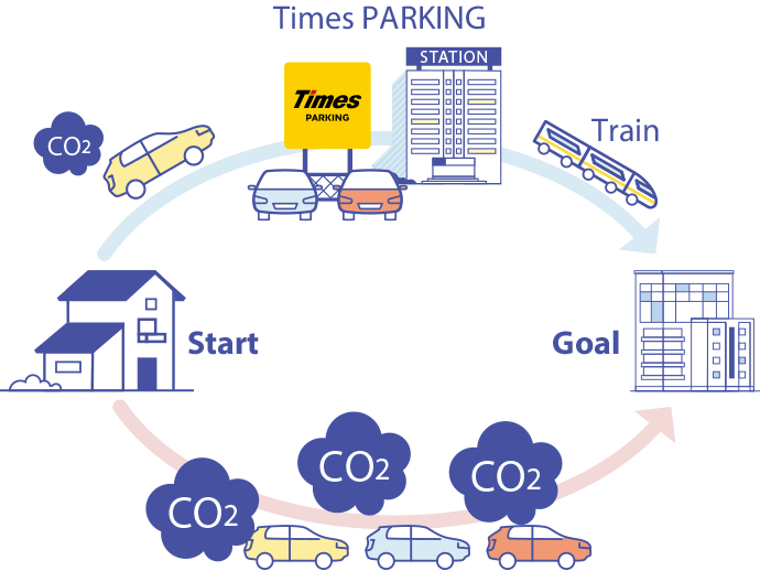 駐車場サービスでは、自宅から最寄り駅までクルマで行き、駅近くの駐車場にクルマを駐車して鉄道などの公共交通機関で目的地まで移動する「パーク&ライド」が可能な駐車場の開発を行っています。