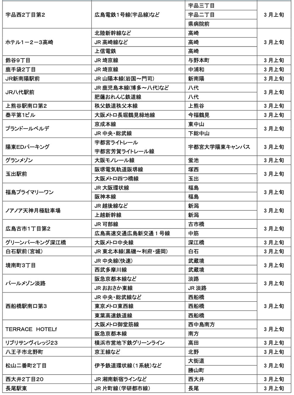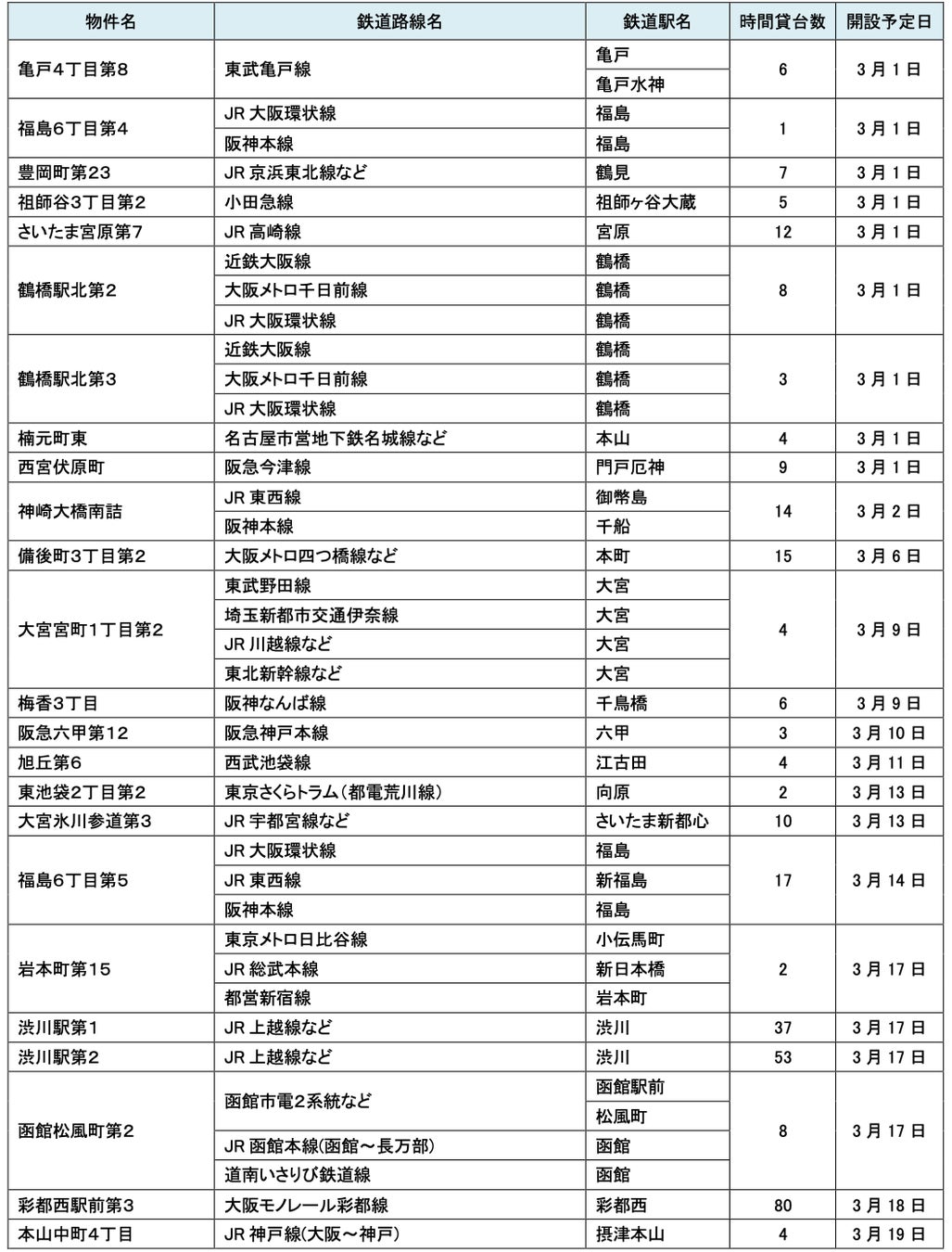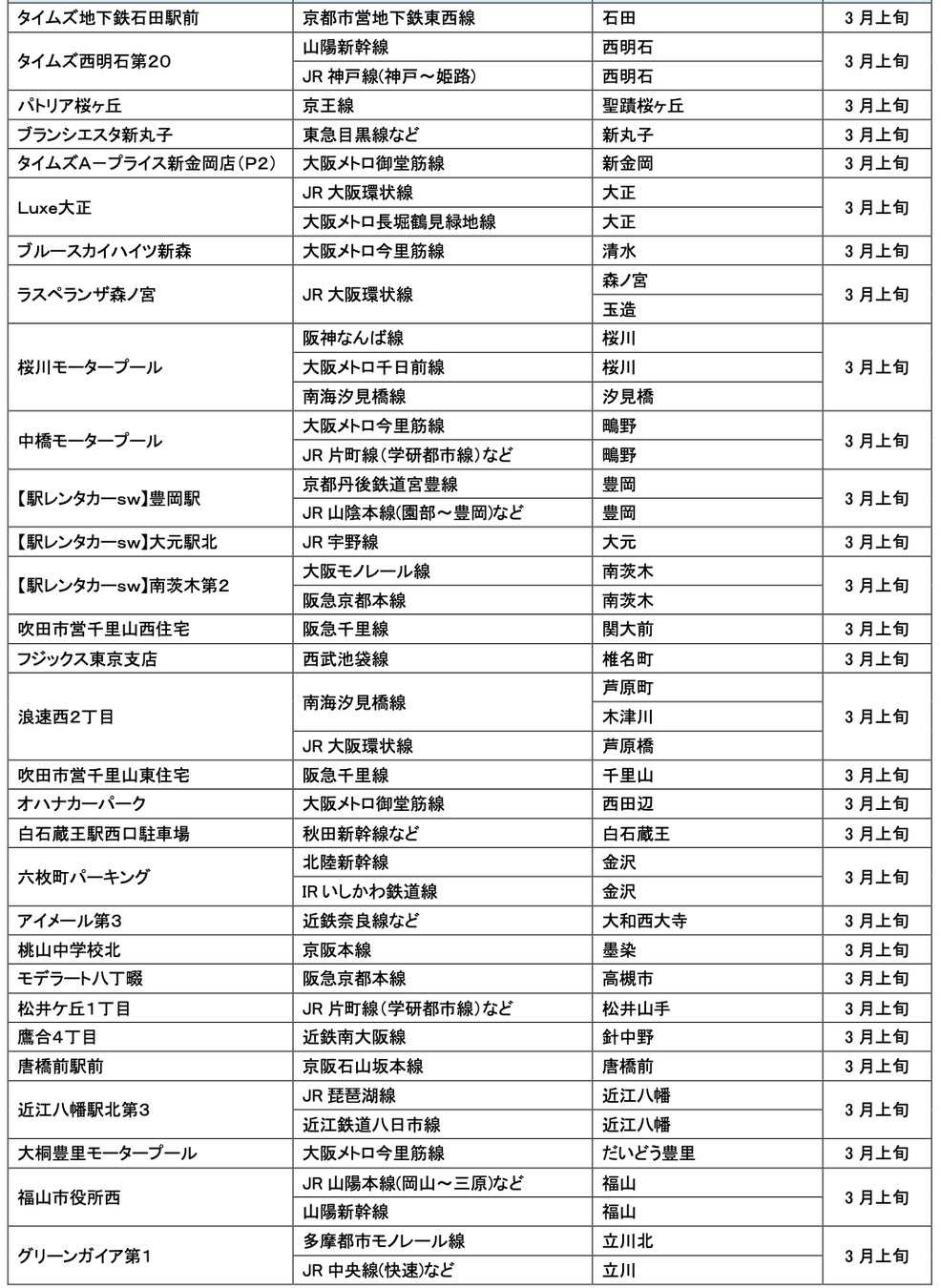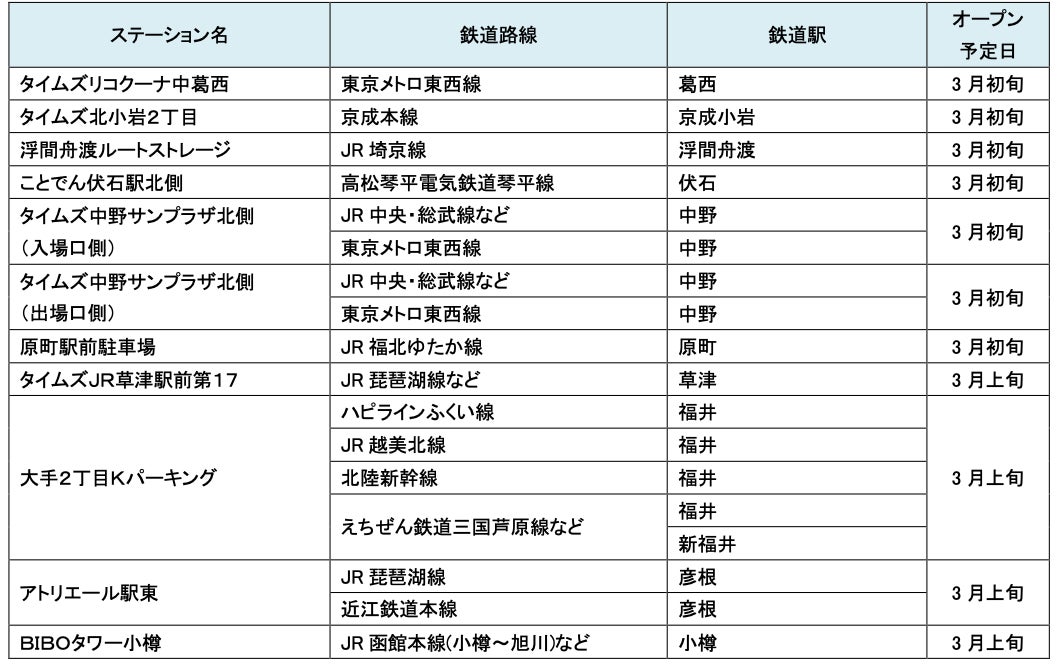 3月にオープンおよびオープン予定の「パーク&ライド」に適した駐車場は31件、「レール&カーシェア」に適したステーションは117件です。
