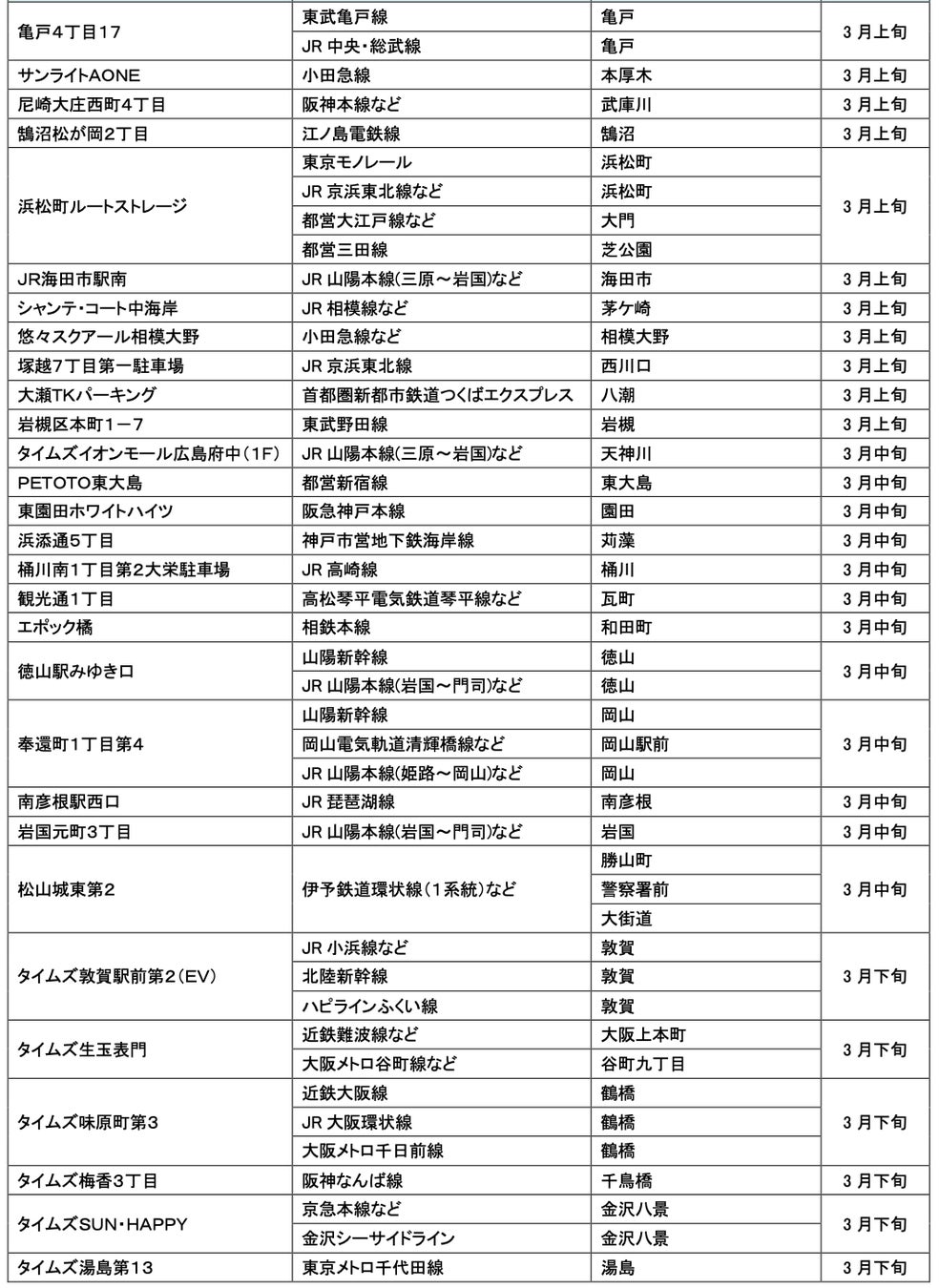 【サステナビリティアクション】パーク&ライドが可能なタイムズパーキング レール&カーシェアが可能なタイムズカーステーション 3月のオープン情報