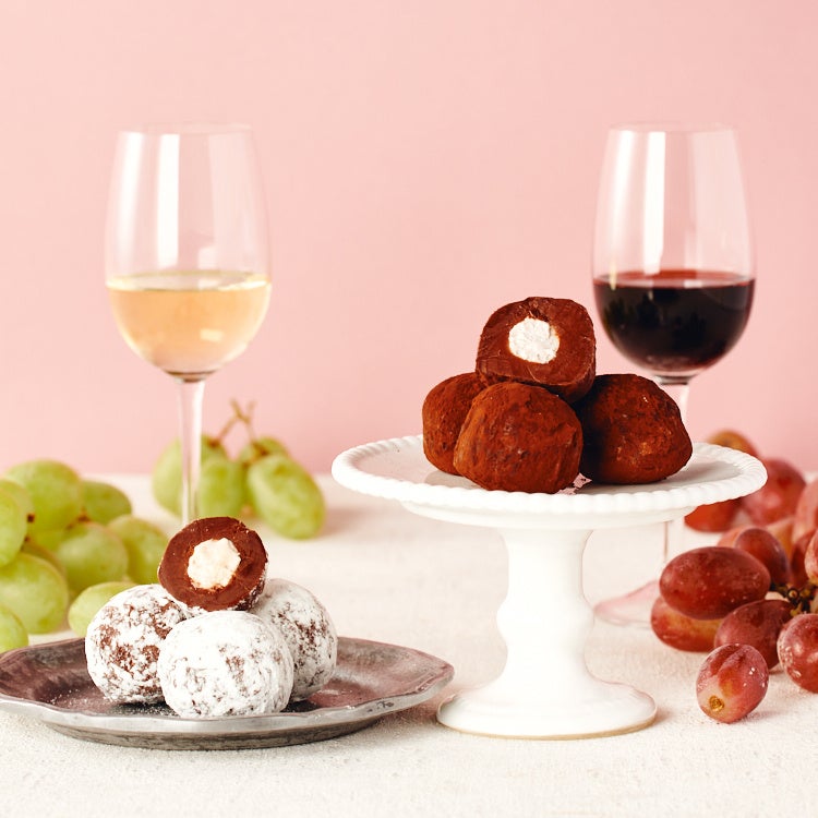 商品名:「山梨ワイナリーから生まれた 濃厚生チョコトリュフ(赤)」/「山梨ワイナリーから生まれた 濃厚生チョコトリュフ(白)」