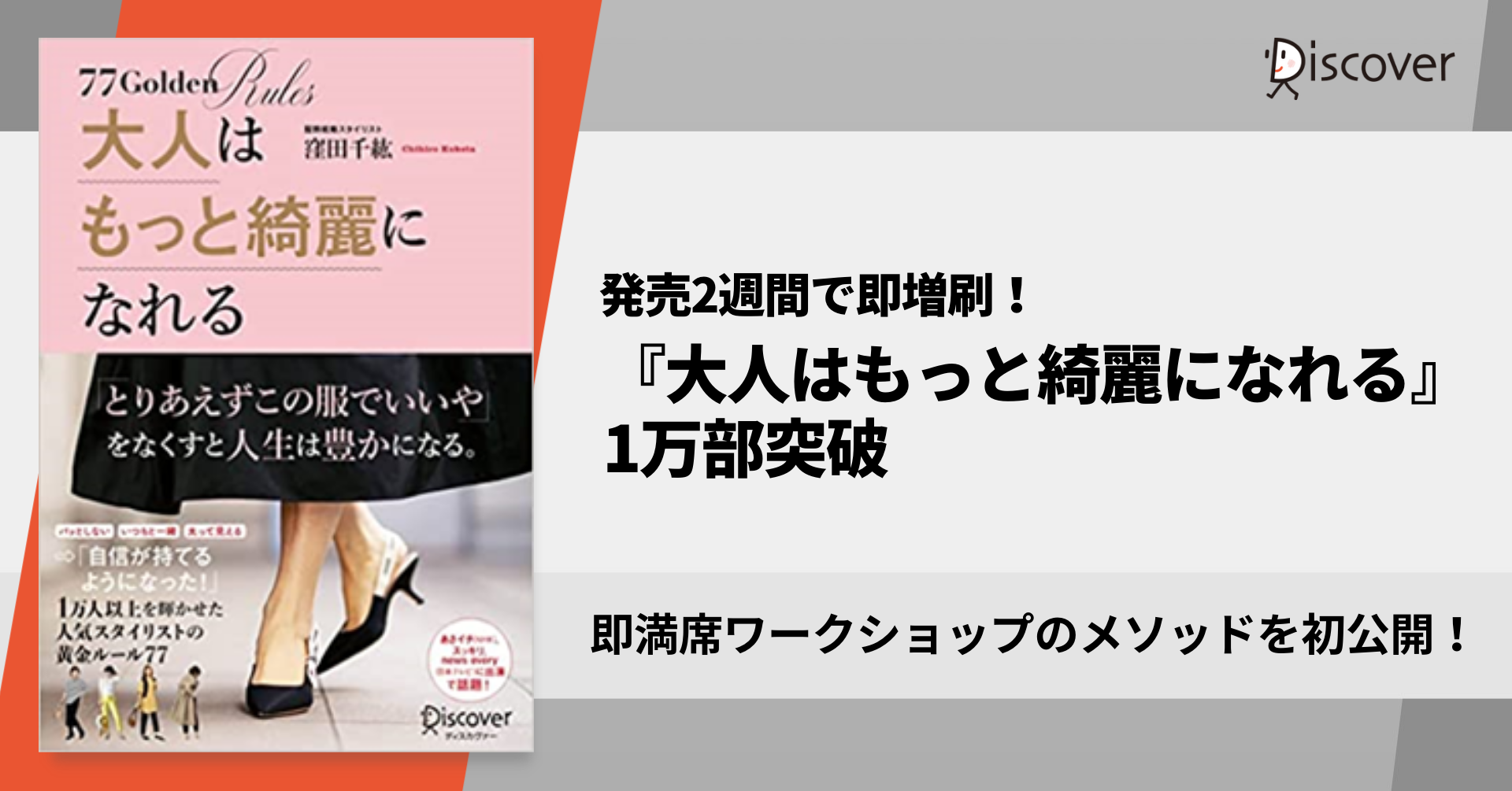 株式会社ディスカヴァー・トゥエンティワン(本社:東京都千代田区、取締役社長:谷口奈緒美)は2022年3月25日刊行の『大人はもっと綺麗になれる』(窪田千紘・著)を増刷し、1万部を突破しました。