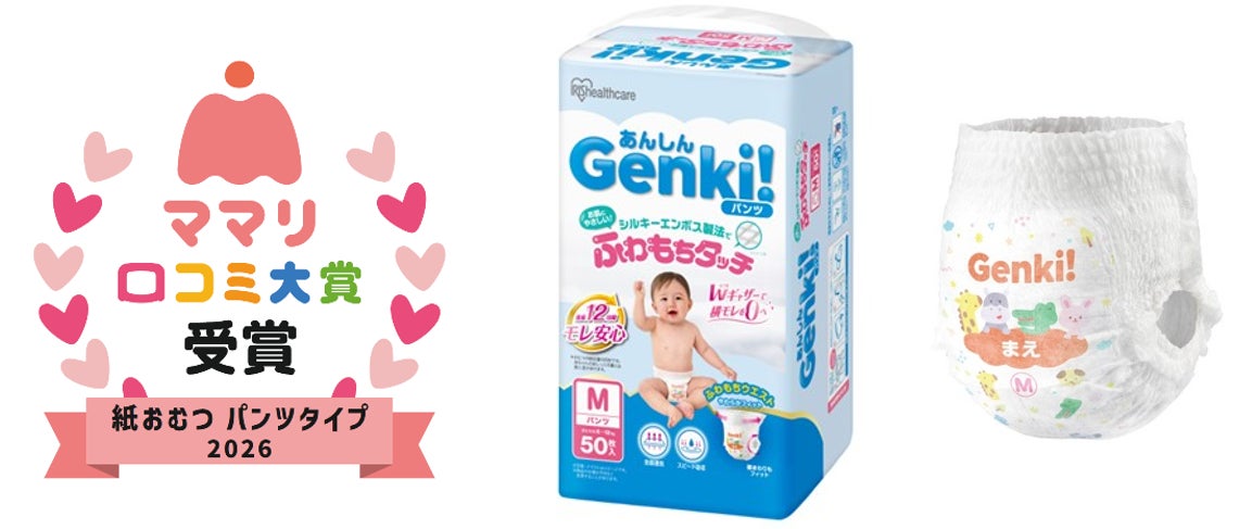 アイリスオーヤマの「あんしんGenki!(※)パンツ」が「ママリ口コミ大賞2026」紙おむつパンツタイプ部門を受賞