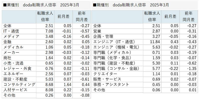 doda転職求人倍率2025年3月は2.51倍(前月差+0.05ポイント)