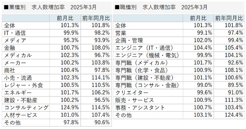 求人数は全体では増加、業種別では「コンサルティング」が増加