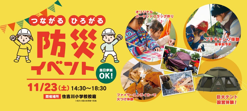 小学校でキャンプ体験!アウトドアを楽しみながら防災への理解を深める「つながる ひろがる 防災イベント」11月23日(土)に実施!