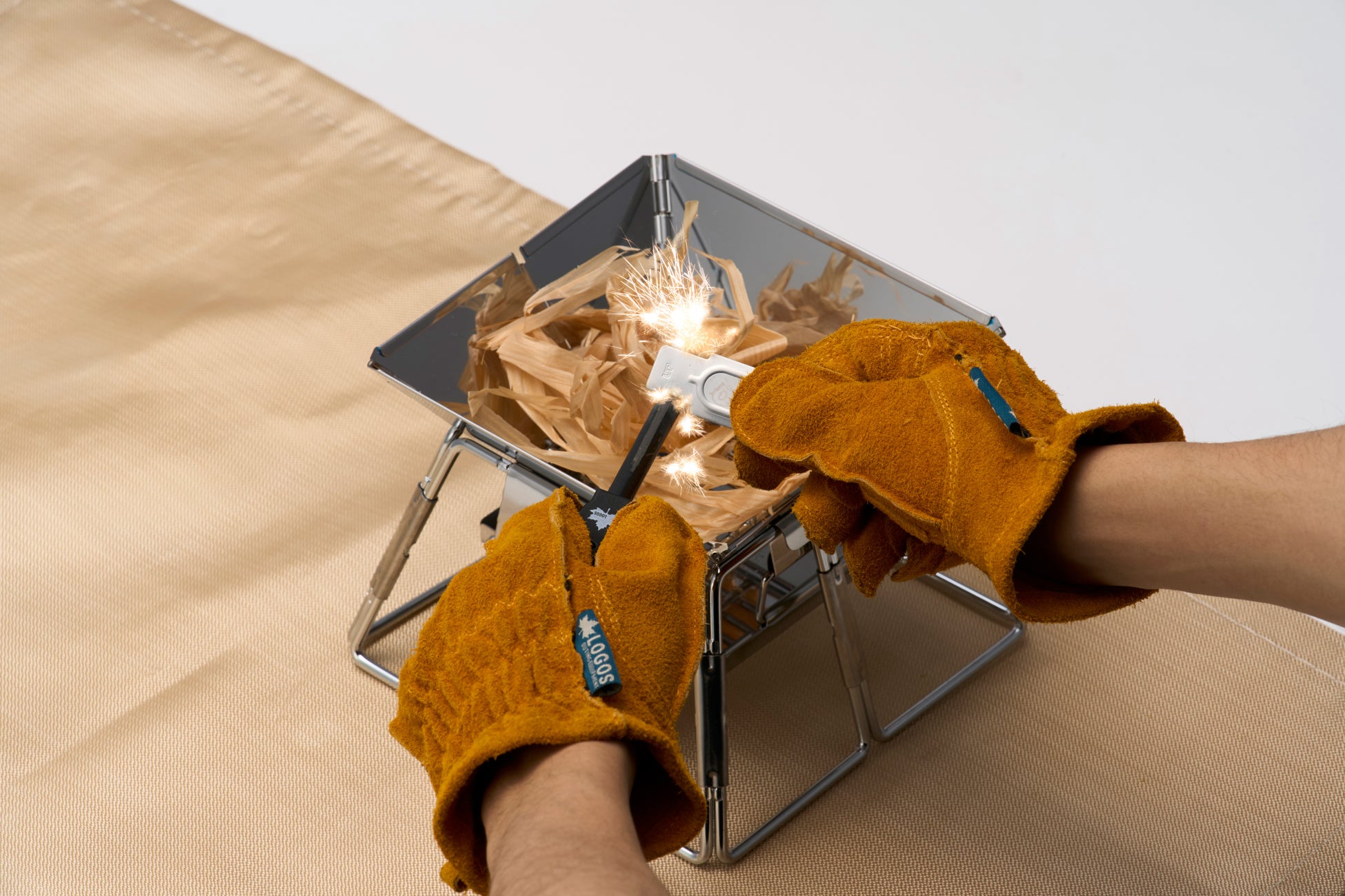 電気やガスが使えなくなった場合を想定して、ファイヤーストライカーを使って火おこしに挑戦!