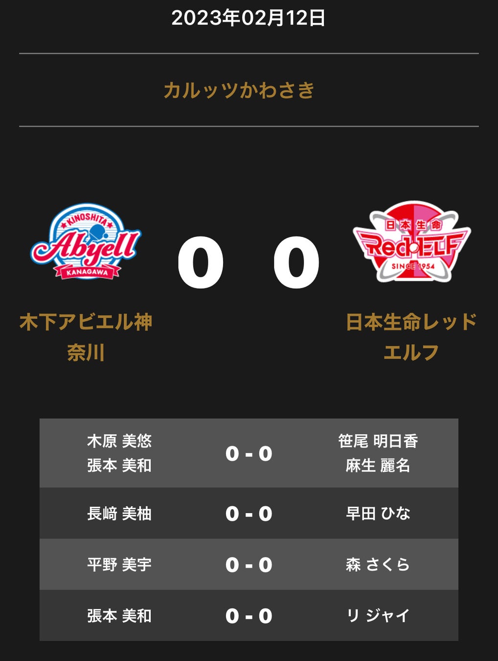 ノジマTリーグ 2022-2023シーズン 公式戦 2月12日開催 木下アビエル神奈川 vs 日本生命レッドエルフ オーダー発表