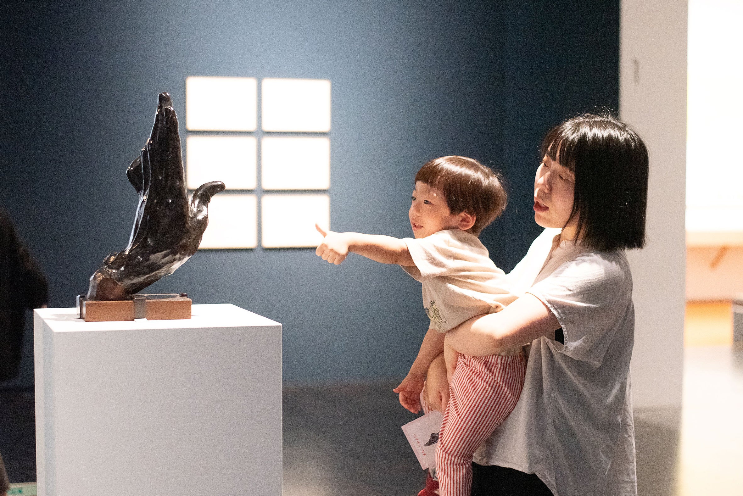 展示室では、19世紀末から現代までの絵画、彫刻、工芸、写真、映像など、幅広いジャンルの作品約200点をご覧いただけます。岡本太郎や草間彌生など日本を代表するアーティストの名作や、セザンヌやルソーなど西洋の巨匠による作品などが勢ぞろい。子どもと一緒に作品鑑賞することで、新たな発見があるかもしれません。