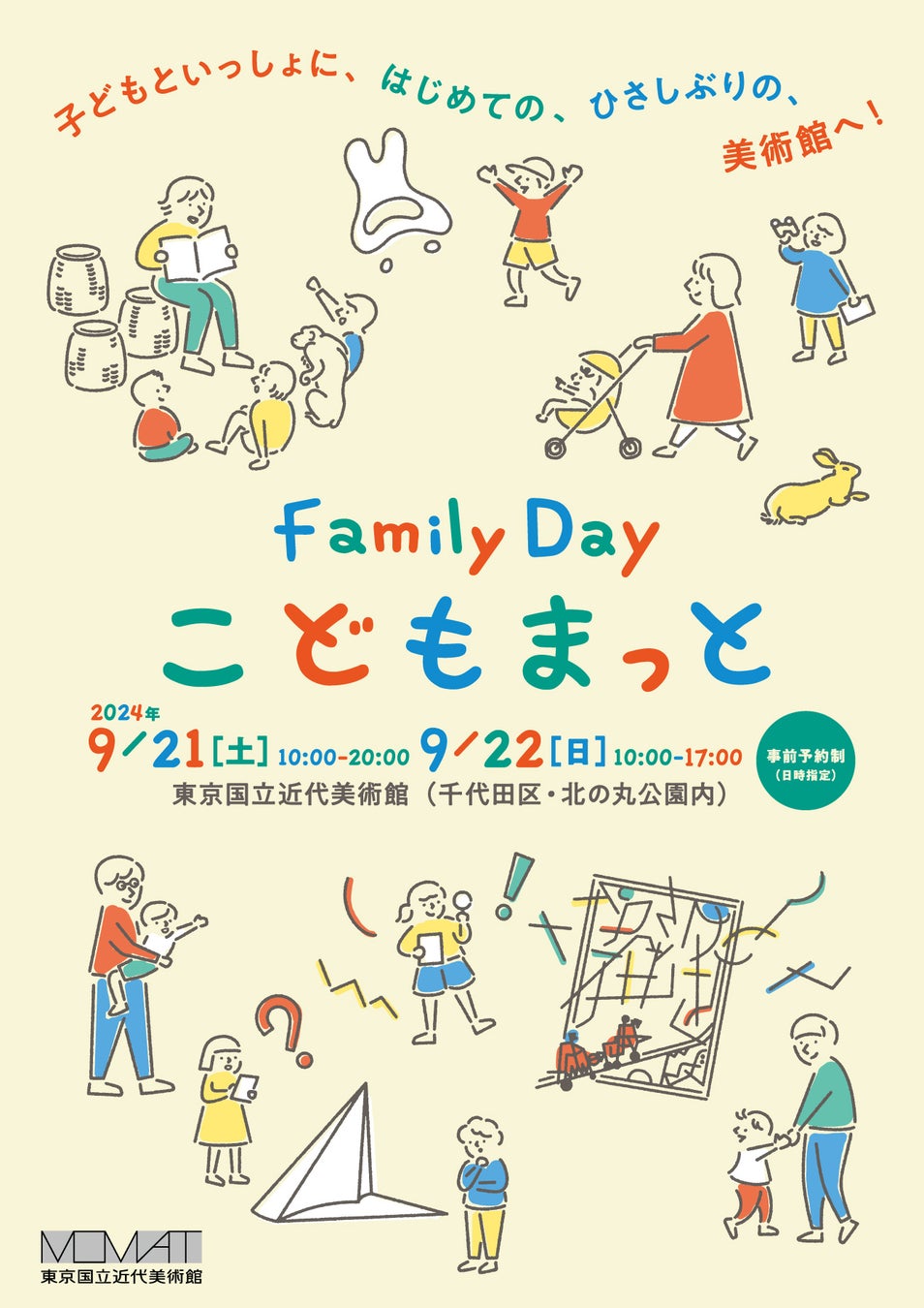 東京国立近代美術館は2024年9月21日(土)、22日(日)に子連れで気兼ねなく美術館を楽しめる特別な二日間「Family Day こどもまっと」を開催します。予約受付を8月26日より開始!