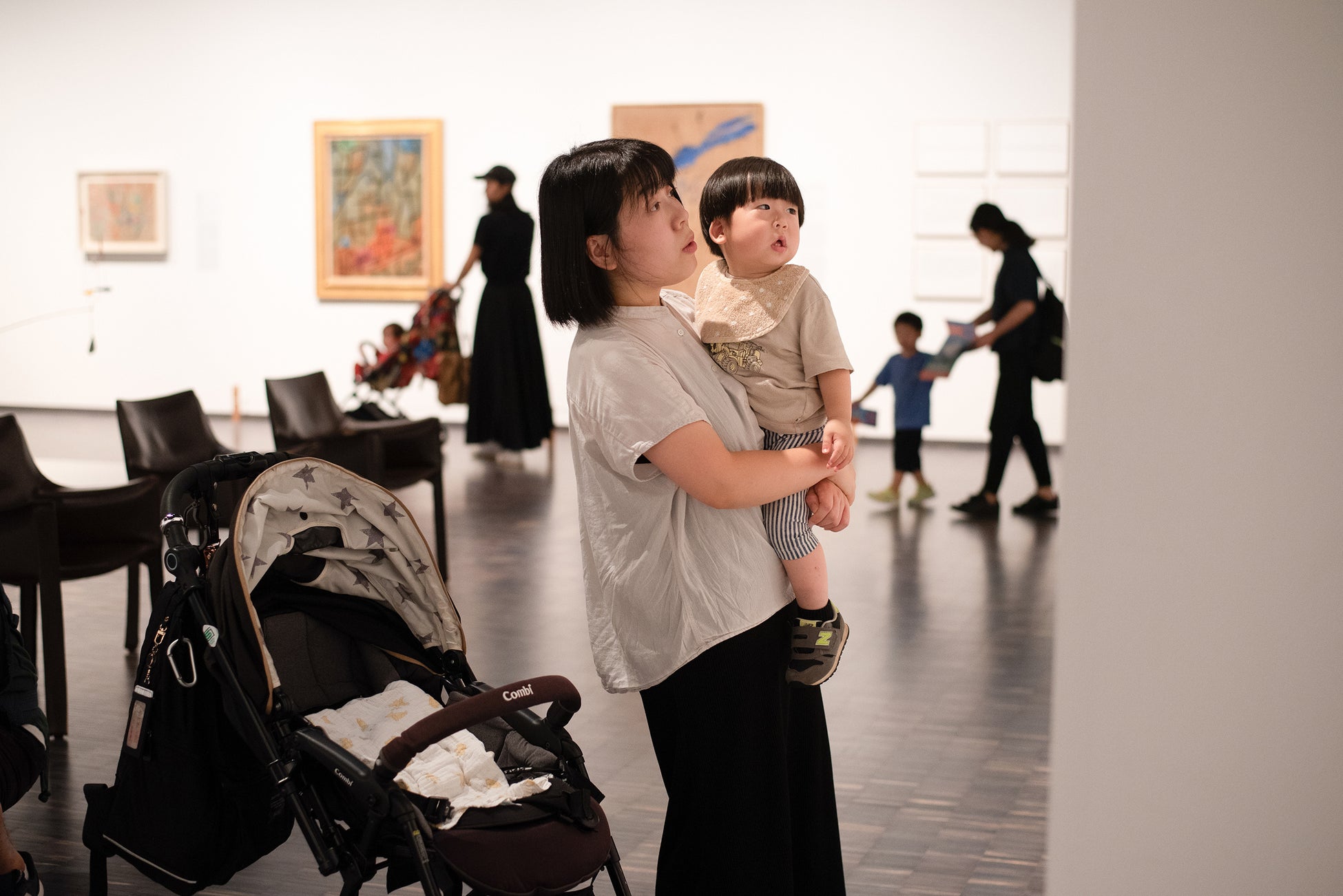 イベント当日は授乳室、おむつ替えスペースなどの設備や休憩スペースを拡充し、子連れでの美術館訪問のハードルを緩和し、快適に過ごせる環境を整備します。また、子ども向けの対話鑑賞や鑑賞ツールの無料配布など、美術館や作品鑑賞に親しめるプログラムを実施します。