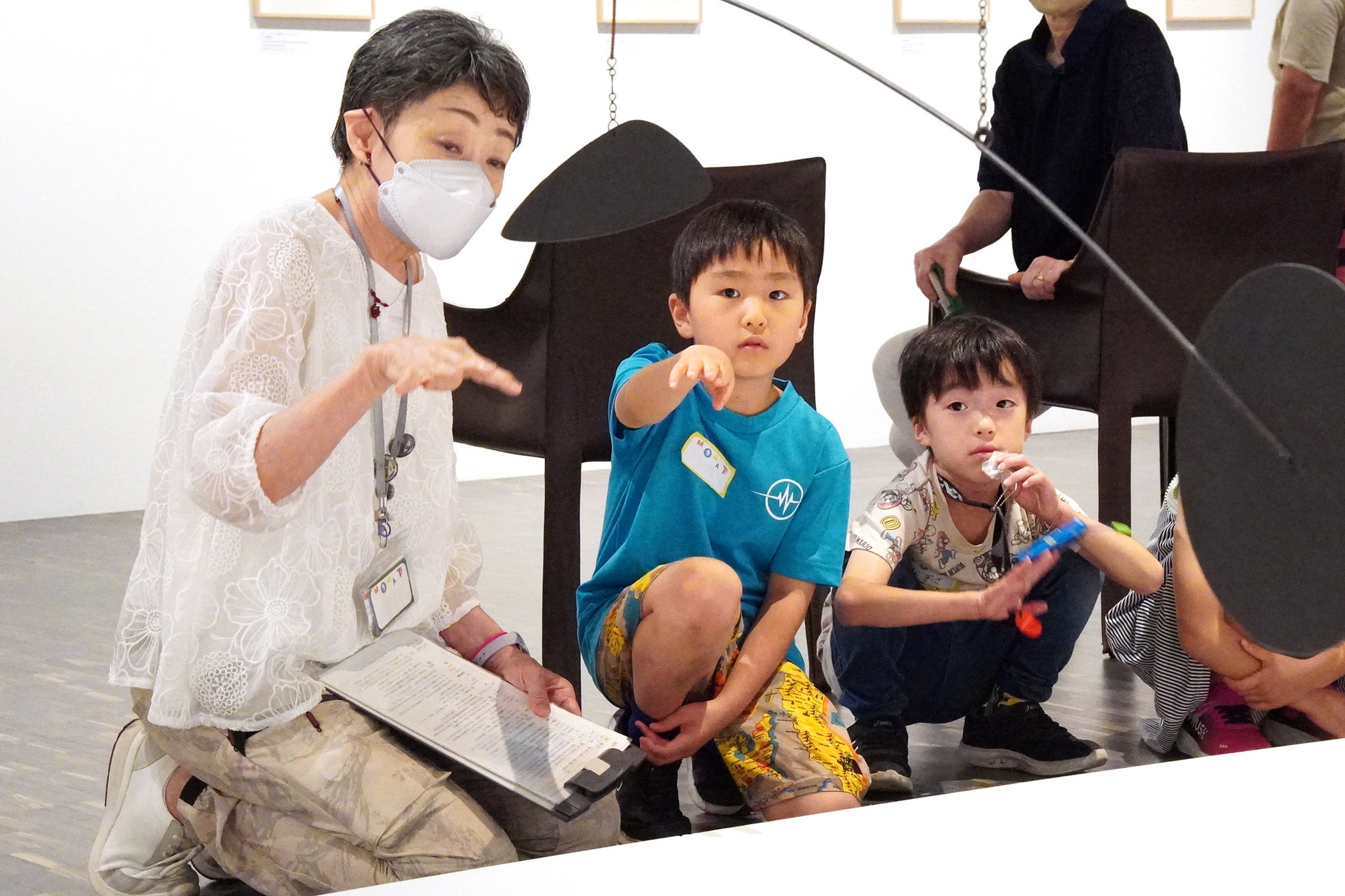 当館ガイドスタッフ(ボランティア)と一緒に作品を鑑賞しながら、感じたことや考えたことをお話しする、子ども向けの対話鑑賞プログラムです。展示室内での声掛けで開始するので、その場で気軽にご参加いただけます。