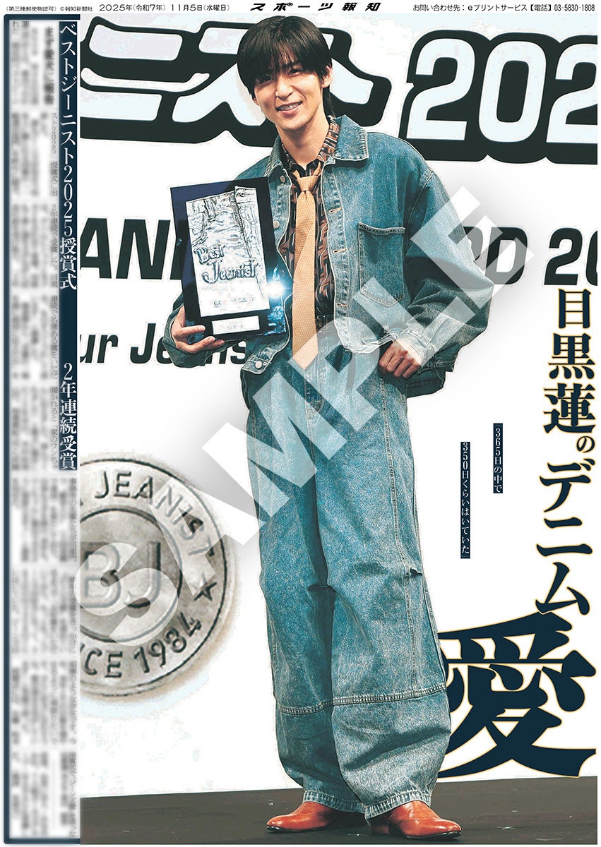 Snow Man・目黒蓮ベストジーニスト賞の紙面を「スポーツ報知コンビニプリント」で発売中