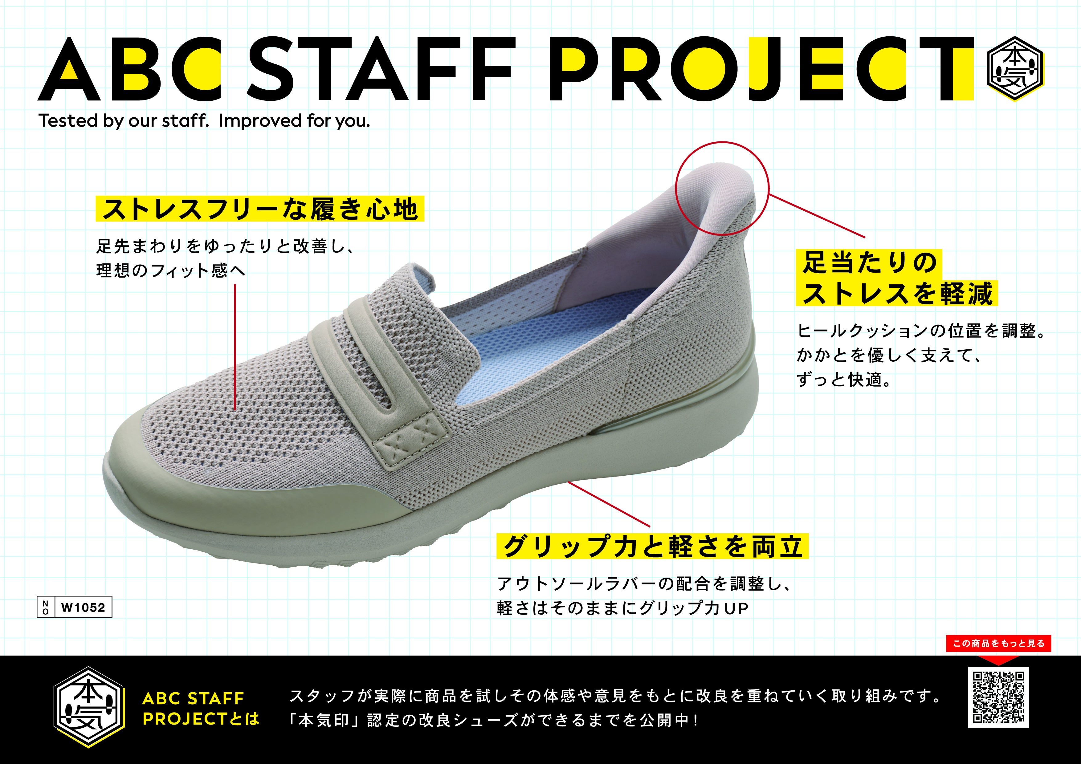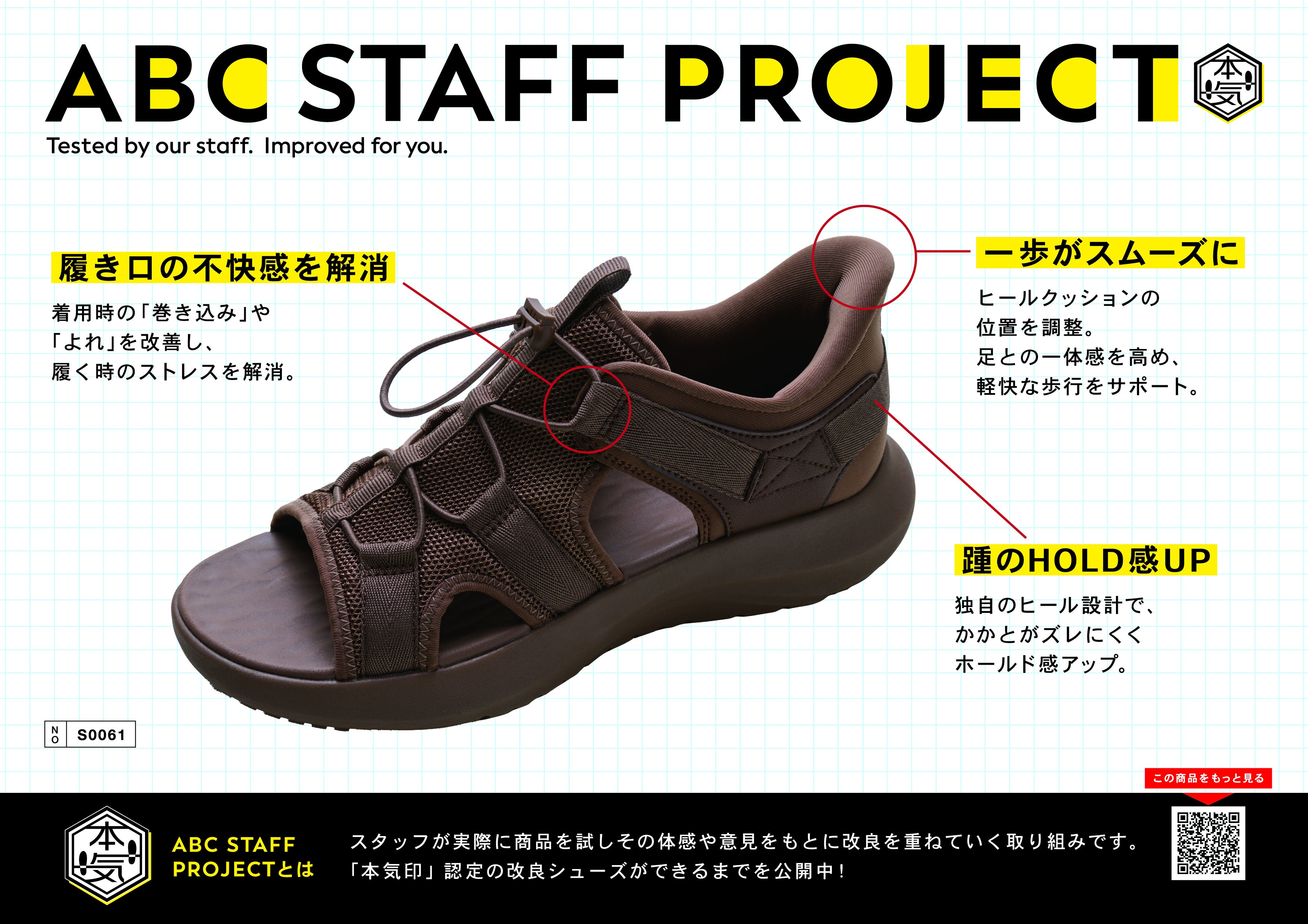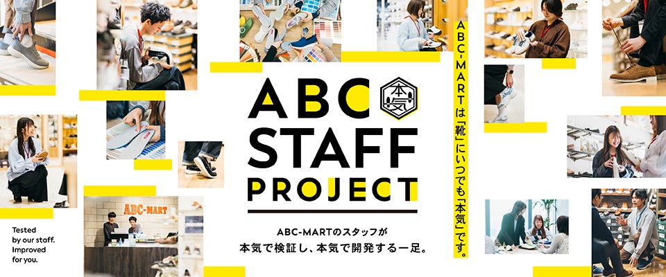 「ABC STAFF PROJECT」は、全国各地に1,000店舗以上展開するABCマートの店舗スタッフが、お客様の代弁者となり、実際に商品を履いて検証を行うことで、本当に寄り添う一足を“本気”で開発するプロジェクトです。
