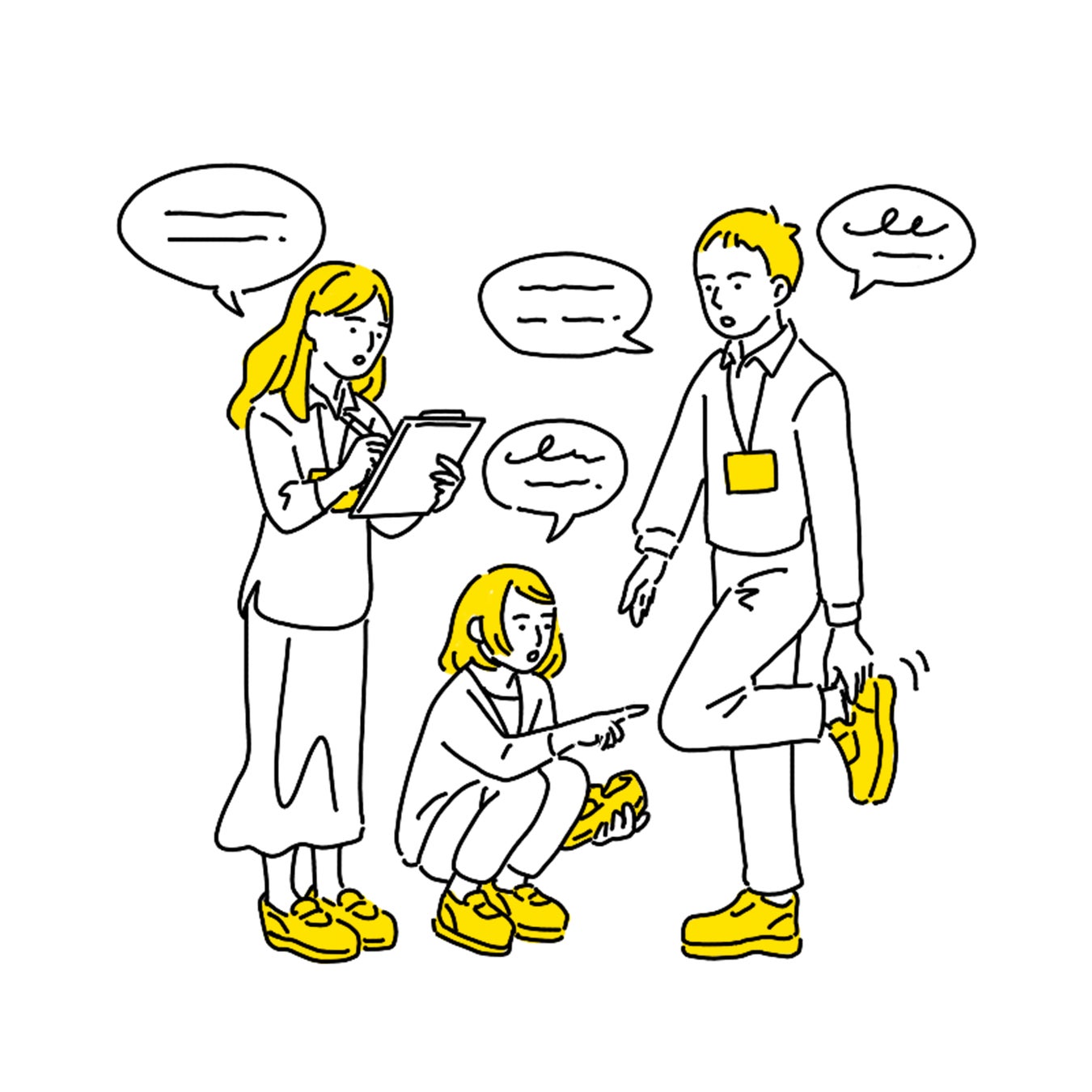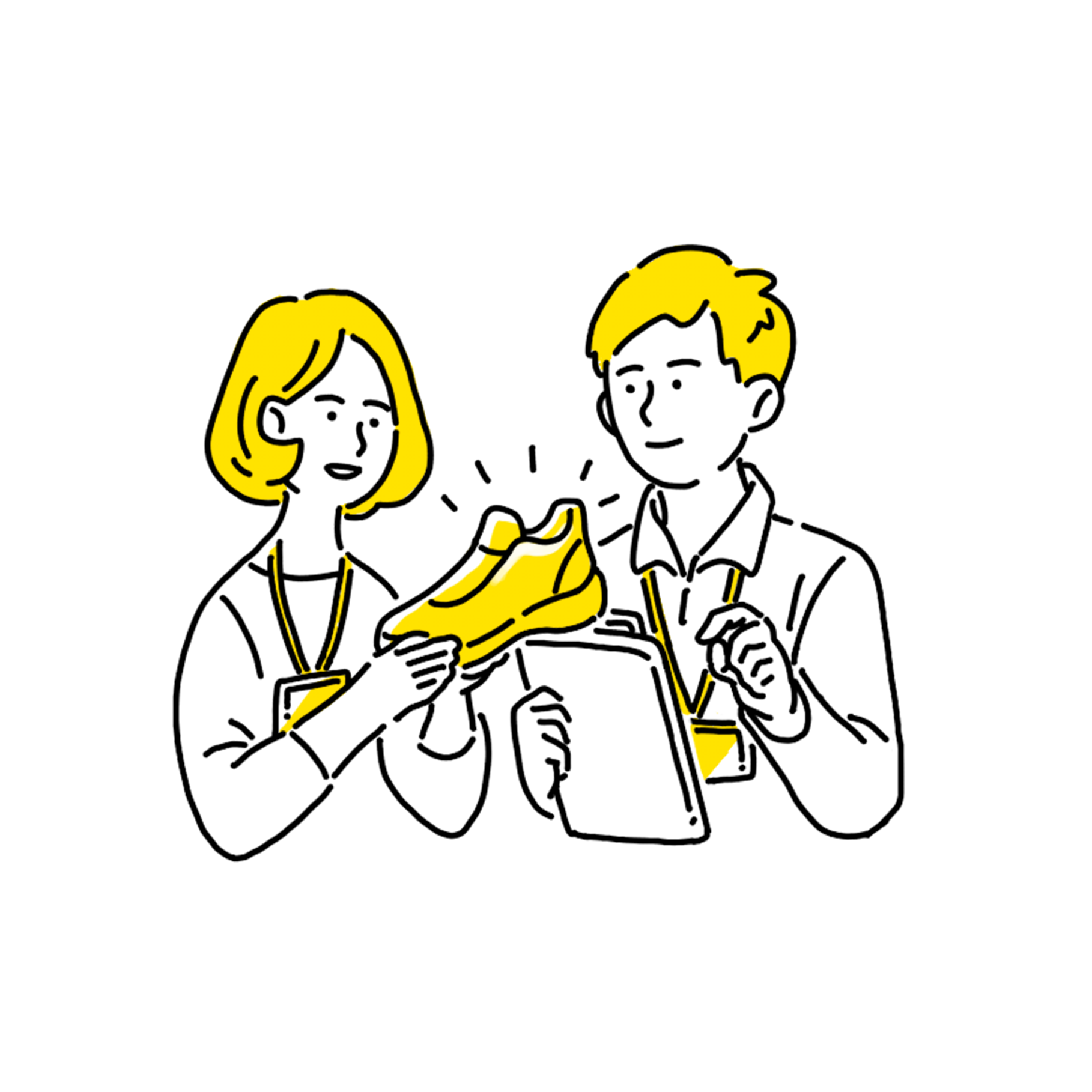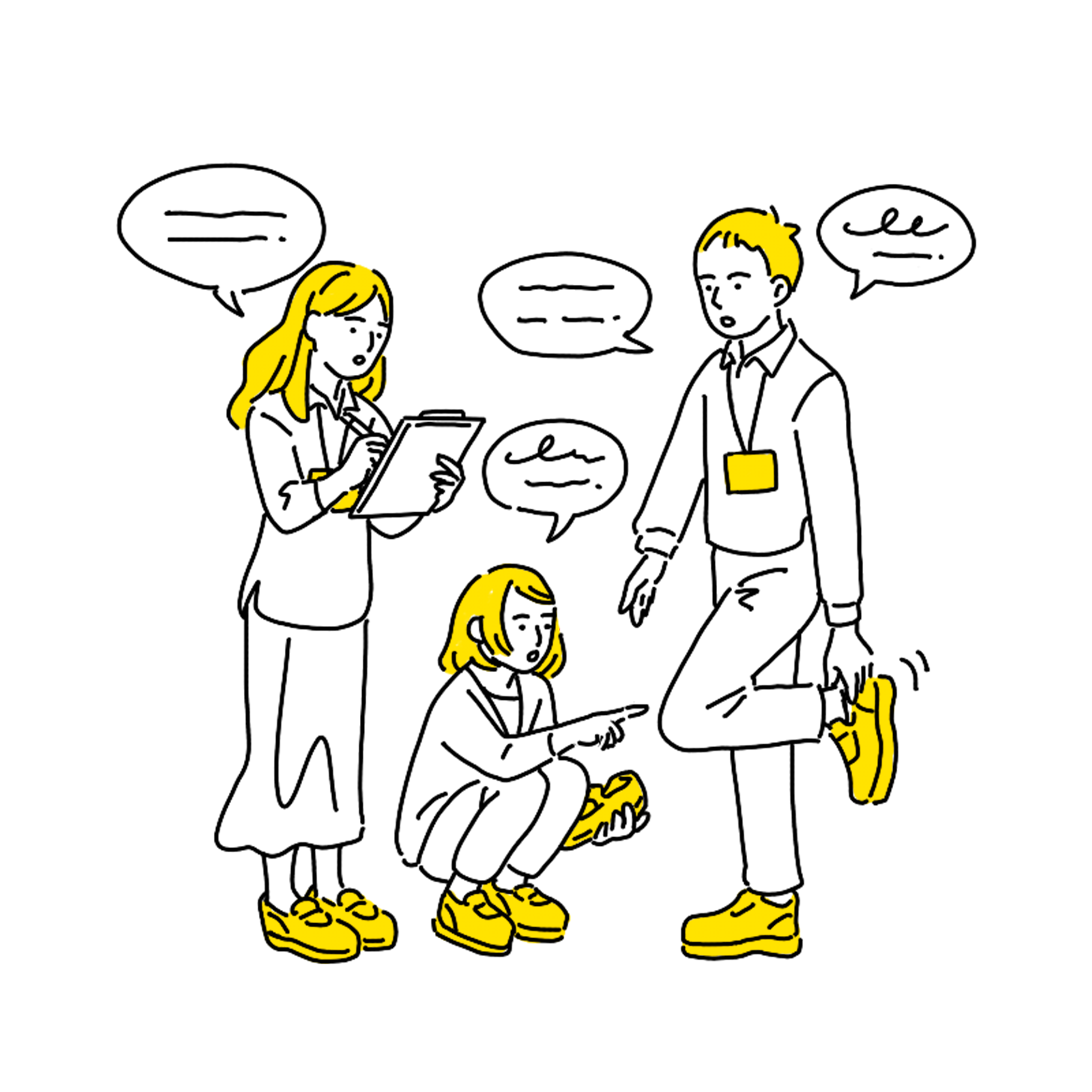 サンプル品を元に、店舗から本社スタッフまで、あらゆる日常の動きの中で、一定期間継続して着用して履き心地、使いやすさを検証。