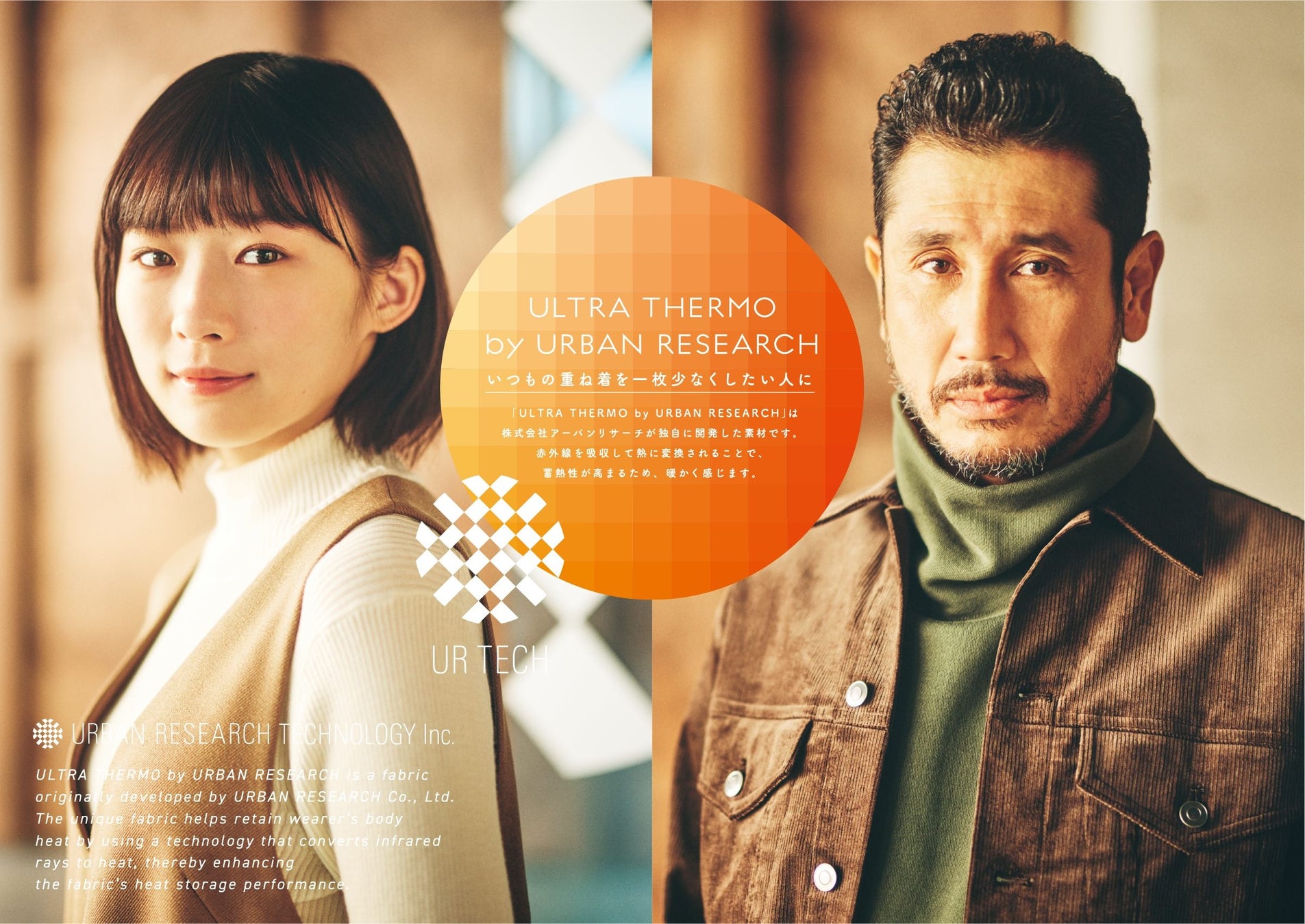 株式会社URBAN RESEARCHは、第一弾で紹介した春夏の機能性素材に続いて、UR TECHの秋冬素材として「ULTRA THERMO by URBAN RESEARCH」を展開いたします。伊藤沙莉さんと渋川清彦さんがUR TECHを開発する架空の会社「URBAN RESEARCH TECHNOLOGY Inc.」で働く研究員を引き続き演じた、第二弾となる新キャンペーンです。